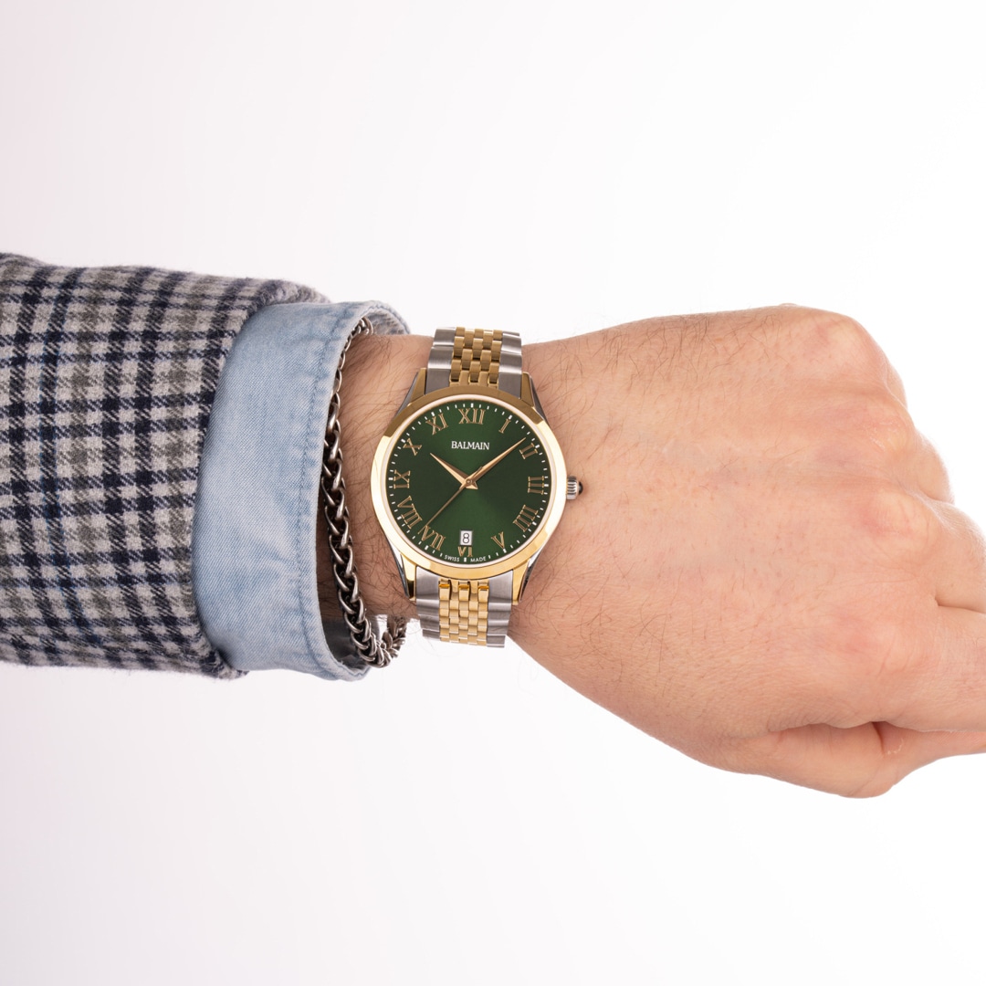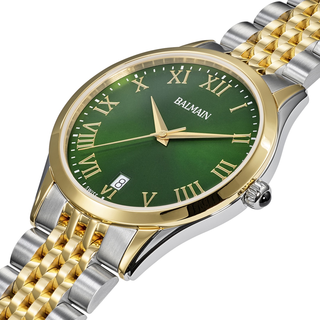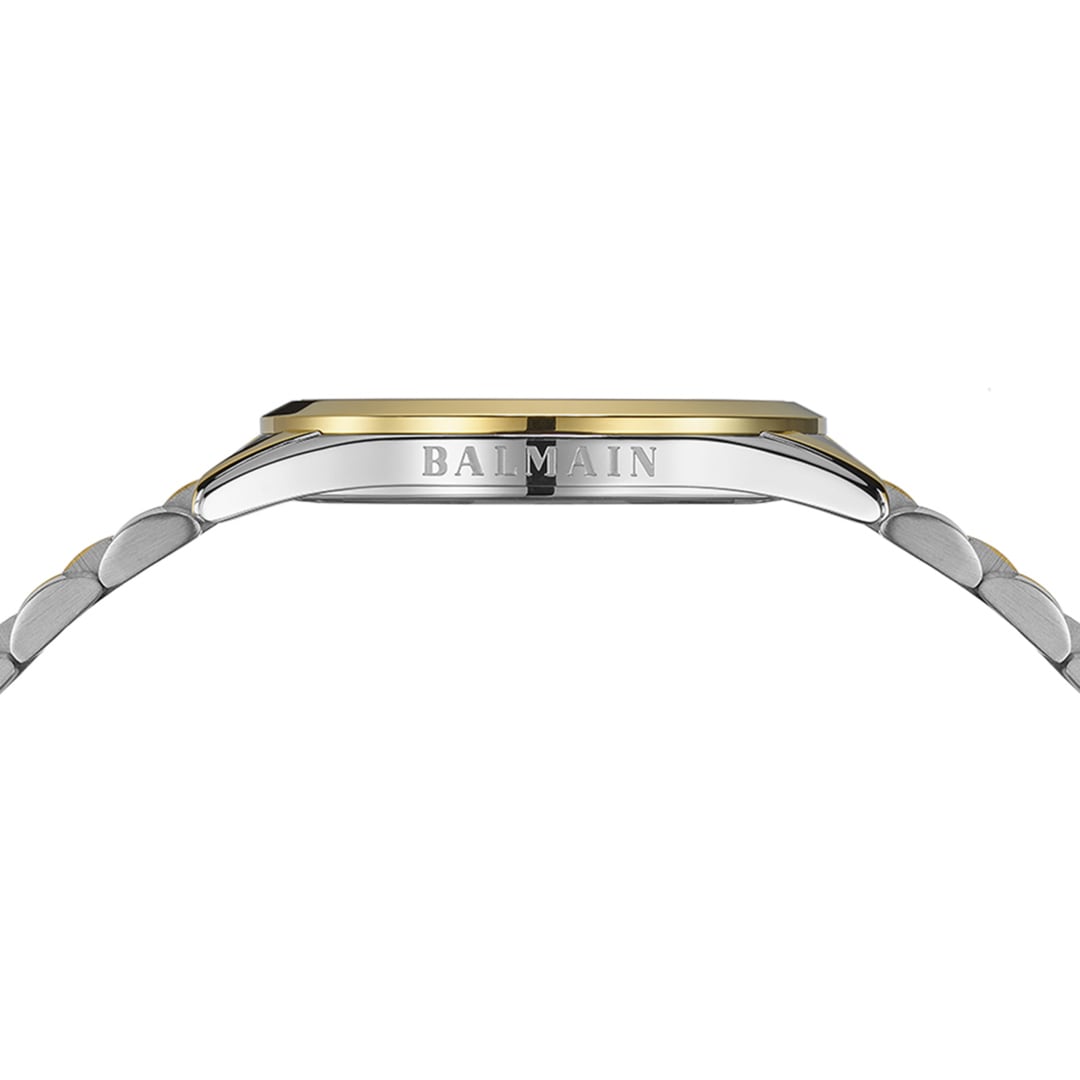 Balmain watches, bearing the prestigious Swiss Made label, are manufactured in Saint-Imier, the birthplace of traditional watchmaking in the heart of the Jura. All Balmain watches fulfil the same strict quality criteria: They are available in inexpensive stainless steel versions, elaborate gold or rose-coloured PVD coatings through to extravagant embellishments with diamonds. Every detail is perfectly crafted to fit the red carpet of the stars or the city pavement, complementing today's dynamic male and female lifestyles. The decoration with arabesques is a characteristic accent in the design of the timepieces. Balmain watches are committed to carrying the tradition of customised time into the future. Swiss watchmaking expertise and innovation have resulted in collections that accurately reflect the sophistication and allure of haute couture. Bold, attractive shapes characterise the signature of the watches. The history of the watch brand includes a series of premieres and sensational designs. In the 1990s, Balmain used diamond settings in steel watch cases in an unprecedented way. In 1998, the Chronolady presented the world's smallest chronograph for a ladies' watch.