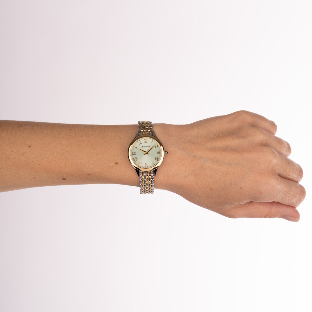 True greatness often reveals itself in the details. With its delicate diameter of 29 millimetres, the Balmain de Balmain II celebrates the art of understated elegance. Like a fine piece of jewellery, this feminine timepiece nestles gently against the wrist and subtly complements every one of your looks. The classic-looking design and harmonious lines reflect the unmistakable aesthetics of the famous brand. With every glance at the watch, rely on excellent Swiss watchmaking that unites the highest precision with imperishable beauty.