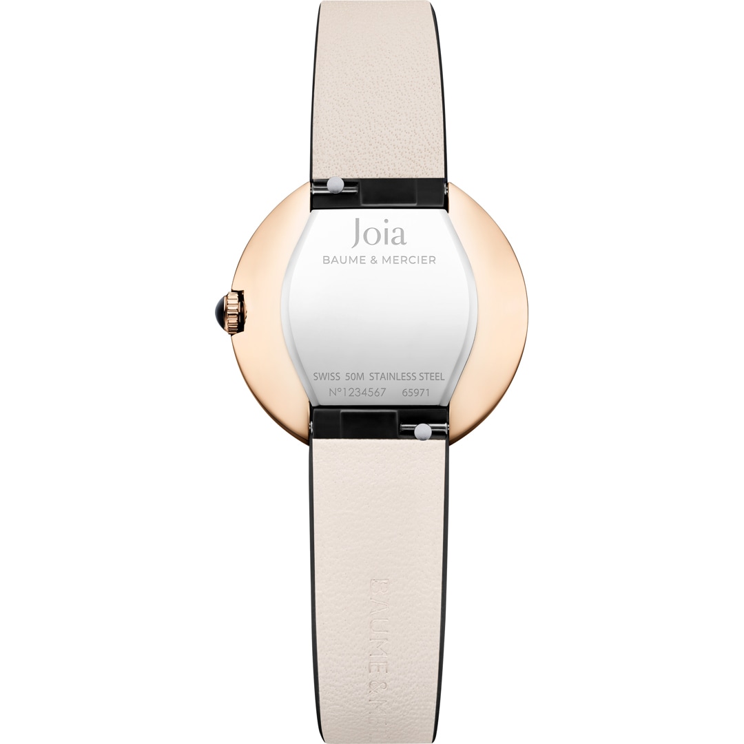 The Joia by Baume & Mercier is an ode to elegance with a touch of originality: a collection created for the modern woman who combines refinement with fierce independence. Its graceful 28 mm silhouette adorns the wrist like a precious jewel, conveying a chic, contemporary expression of femininity. With its luxurious finishes and assertive character, the Joia watch stands out like a refined companion that perfectly adapts to casual moments and sophisticated occasions alike. Inspired by women with a natural sense of style and a preference for the timeless classics, Joia embodies freedom, culture, and subtle irreverence. Its contemporary allure resonates with those who appreciate authenticity and intuitive elegance. More than a simple watch, Joia becomes the expression of an intimately personal style: an emblematic timepiece created to accompany creative journeys, important encounters, and daily moments enveloped with modern grace.