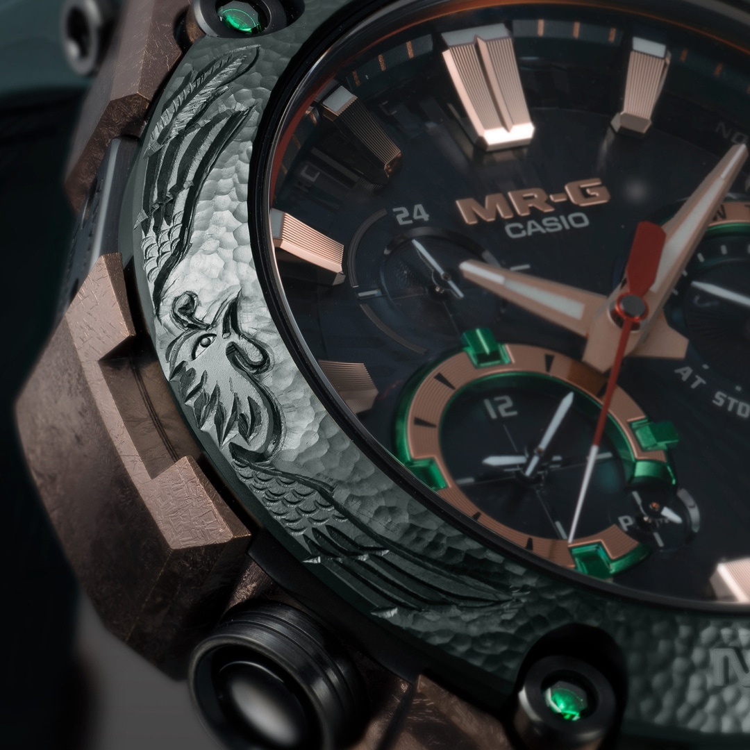 Immerse yourself in luxurious quality with the limited-edition MRG-B2000KT, featuring a breathtaking engraving of the auspicious phoenix in flight — handcrafted in exquisite detail by a master of Japanese metalsmithing. A symbol of good fortune, nobility, supreme happiness, and longevity, the legendary bird has long held a revered place in traditional artisanal crafts.
