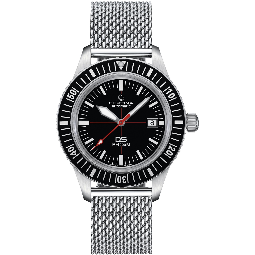 - While looking for a retro diving watch, I came across the Certina PH200M. I was actually fixated on the Mido Ocean Star Tribute, but the slightly larger Certina with its ceramic bezel won me over immediately. Unfortunately, Certina only offers the blue version with a leather and NATO strap, but thanks to Christian, the Milanese strap was quickly obtained. What cannot be seen in any of the pictures of the watch is the golden shimmer of the bezel lettering, hands and Certina logos in the oblique light, simply brilliant and super beautiful! Many thanks also to Christian for the very fast delivery, it won't be my last order ;) (Posted on 04.06.2024)