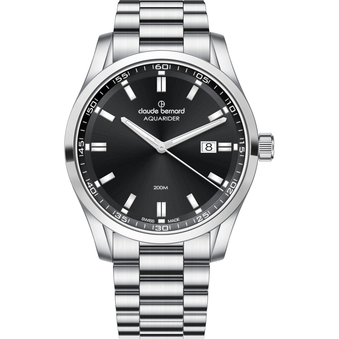 This timepiece is the epitome of a "Swiss Made" all-rounder. The Claude Bernard Aquarider Date impresses with a compelling combination of stylish elegance and extreme robustness. The 42 mm stainless steel case is water-resistant up to 200 metres, making it perfectly equipped for all activities in and on the water. The clean lines of the dial, including a practical date display, are protected by a high-quality, scratch-resistant sapphire crystal – guaranteeing a perfect view at all times. At the heart of the watch, a Swiss precision quartz movement ensures absolute accuracy and everyday reliability.