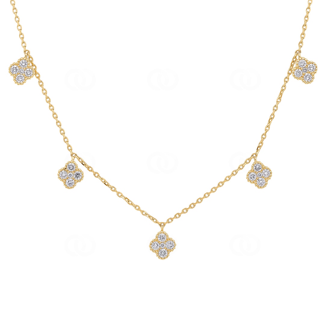 Necklace 750/18 K Yellow Gold Cloverleaves with Diamonds 0.83 ct H/si