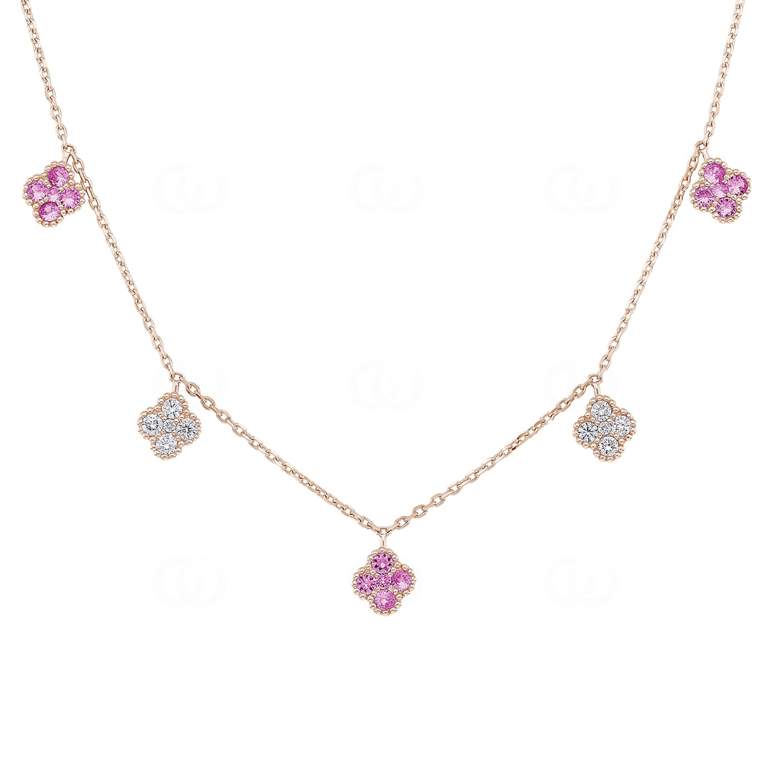 Necklace 750/18 K Rose Gold with Pink Sapphires & Diamonds 0.32 ct H/si