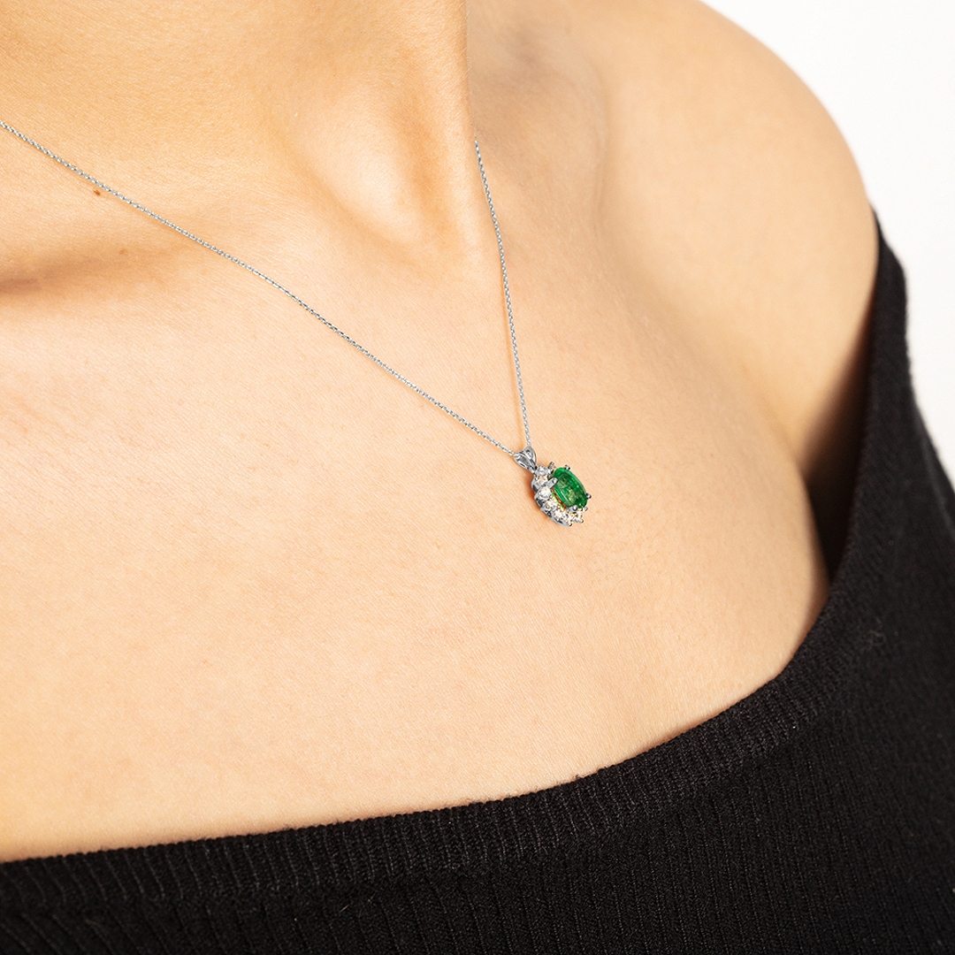 Necklace 750/18 K White Gold with Diamonds 0.28 ct H/si & Emerald 0.65 ct