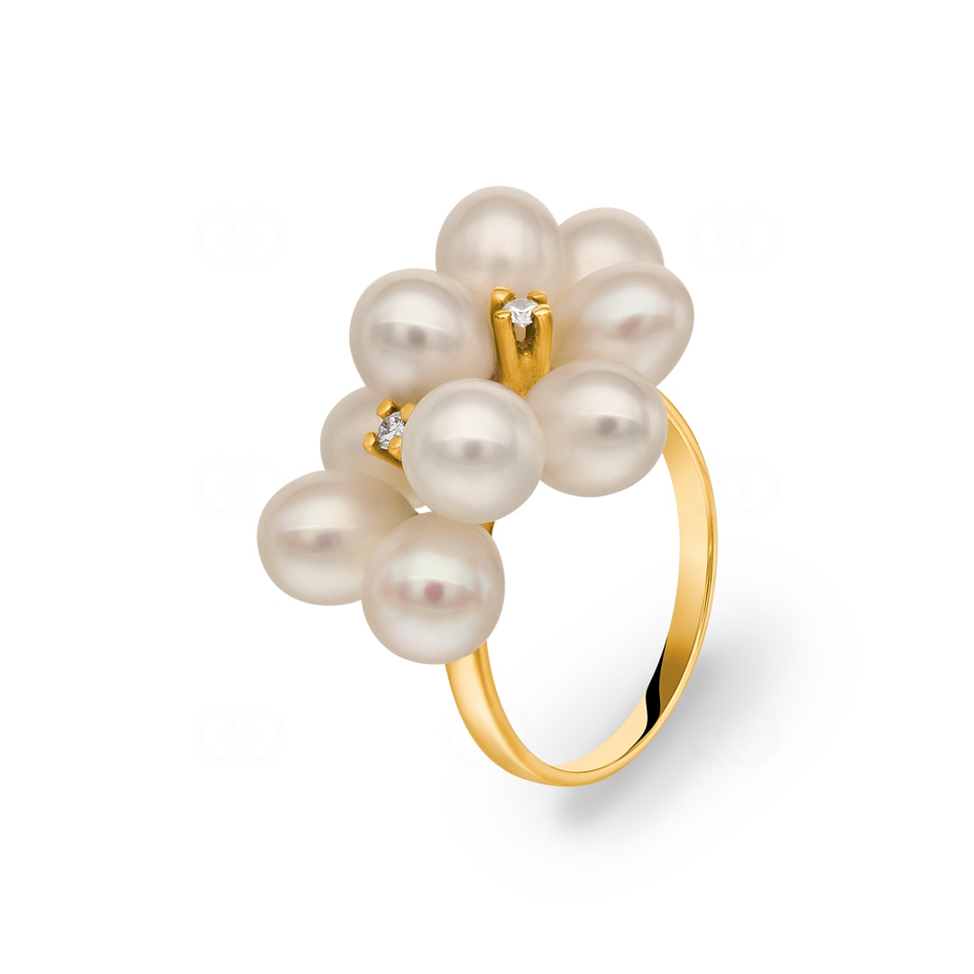 Ring 750/18 K Yellow Gold with Freshwater Pearl & Diamonds 0.03 ct H/si Ø 56