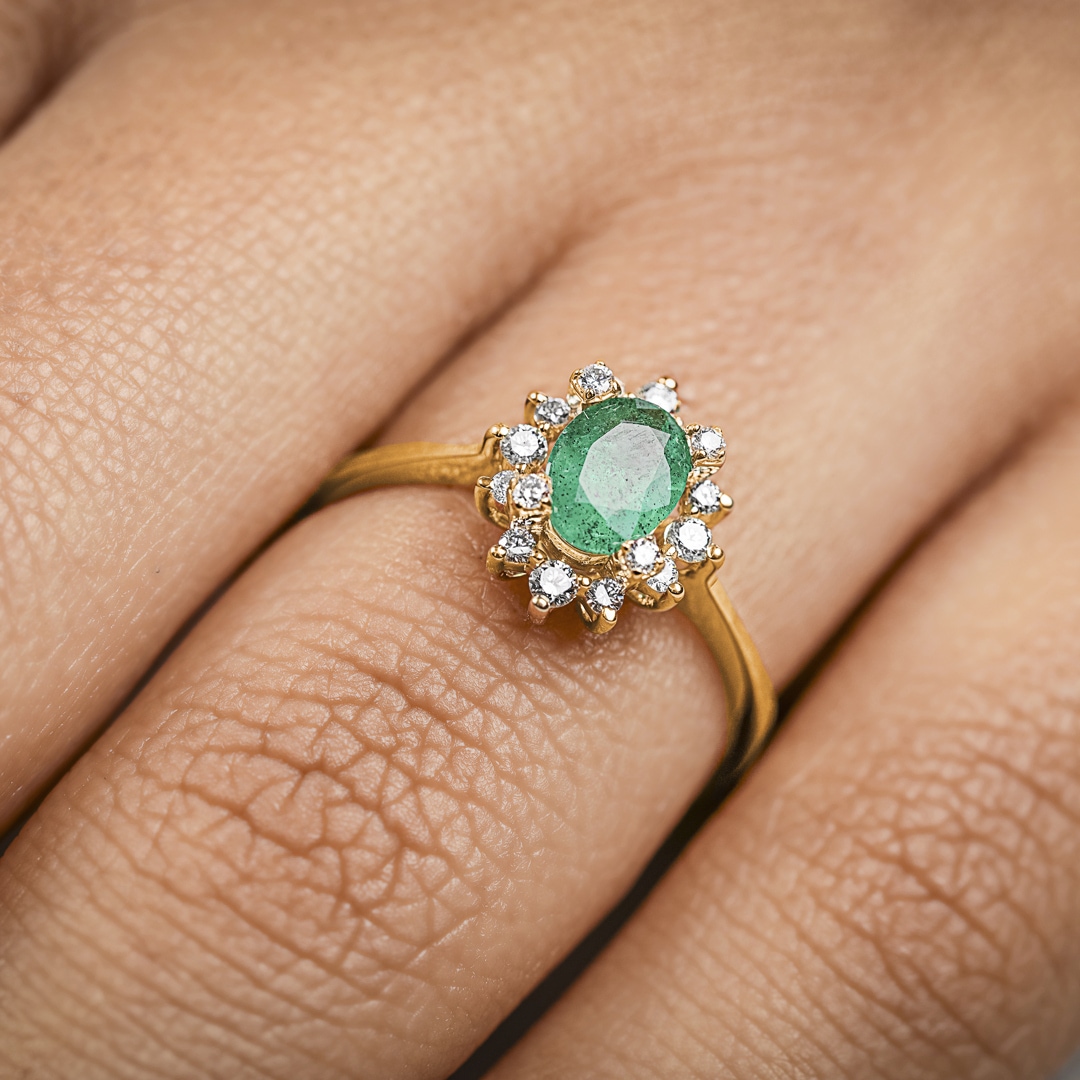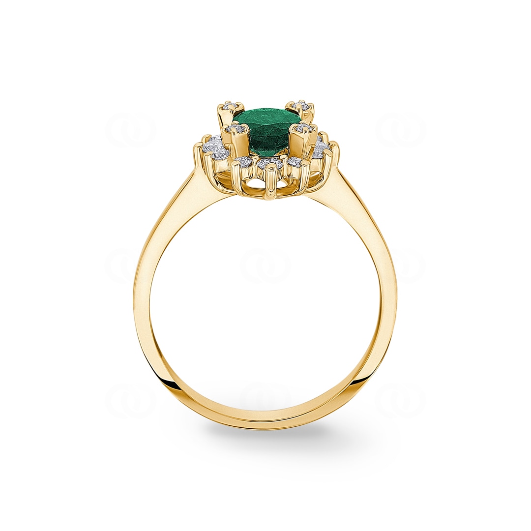 Ring 750/18 K Yellow Gold with Diamonds 0.22 ct H/si & Emerald 0.62 ct