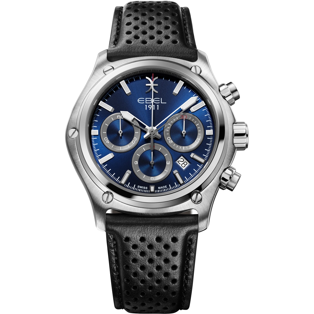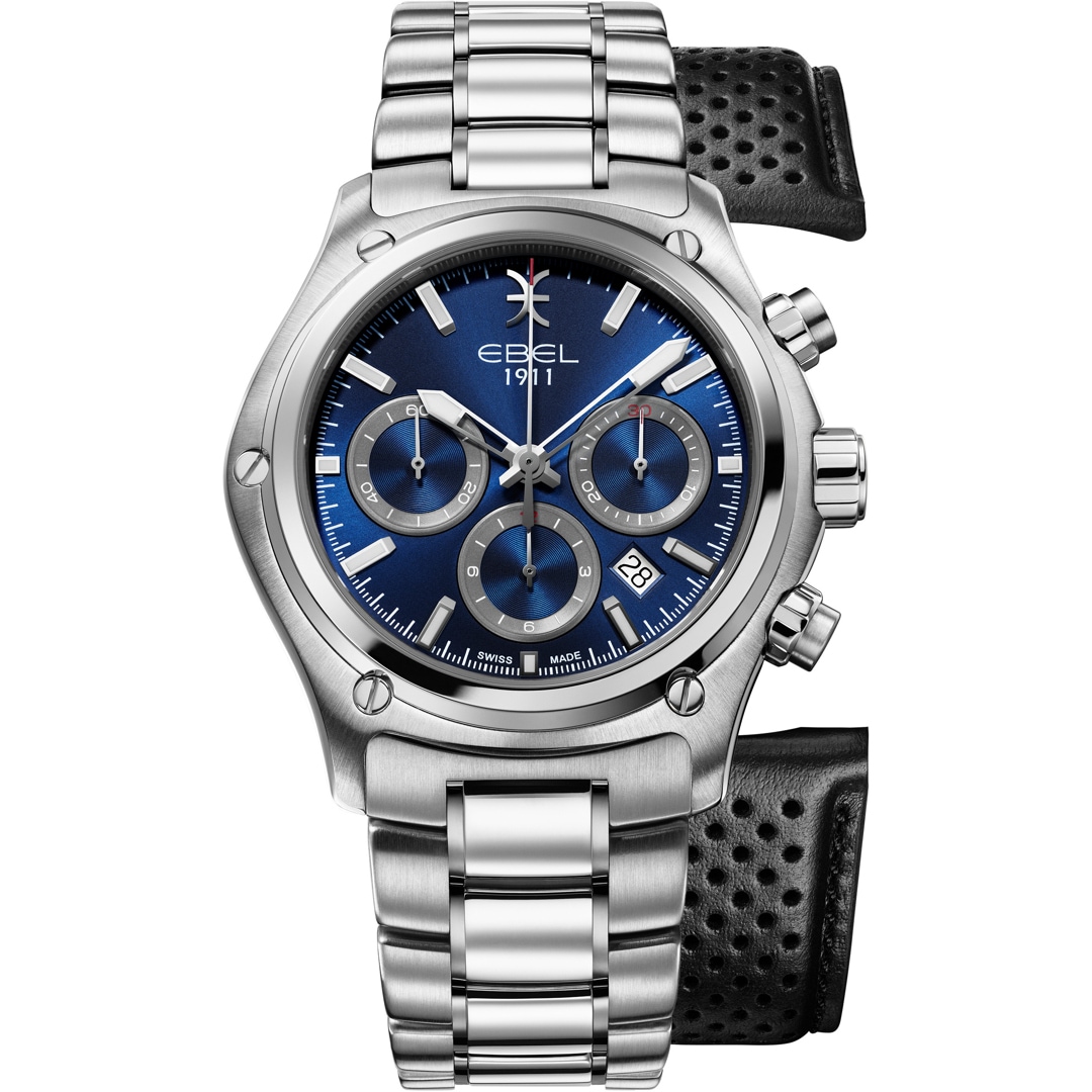 The EBEL 1911 collection is a symbol of timeless elegance and masterful Swiss watchmaking. This automatic chronograph embodies sovereign style to perfection. The powerful 44 mm stainless steel case and the seamlessly integrated stainless steel link bracelet conform to the wrist with unmistakable comfort.