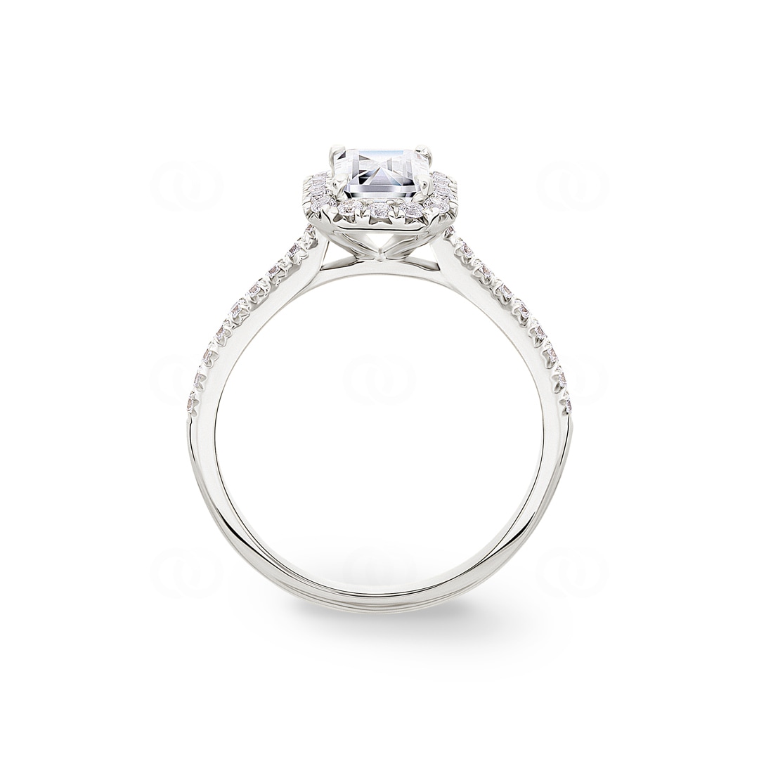 Experience the magic of love with this exquisite halo engagement ring, which captivates with its unrivalled beauty. At its centre is an impressive 1.00-carat emerald-cut diamond that draws the eye with its clean lines and multi-faceted sparkle. Known for its timeless elegance, this stone symbolises the clarity and purity of your affection.