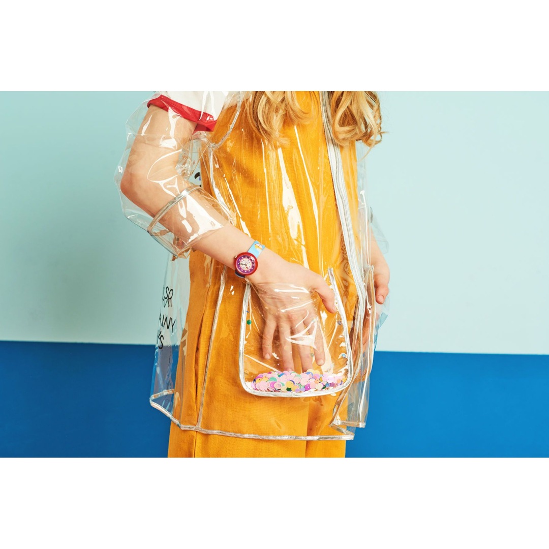 Flik Flak watches are water resistant to 3 bar, so there's no excuse not to take a shower! Kids can go swimming with them and splash around in the water!