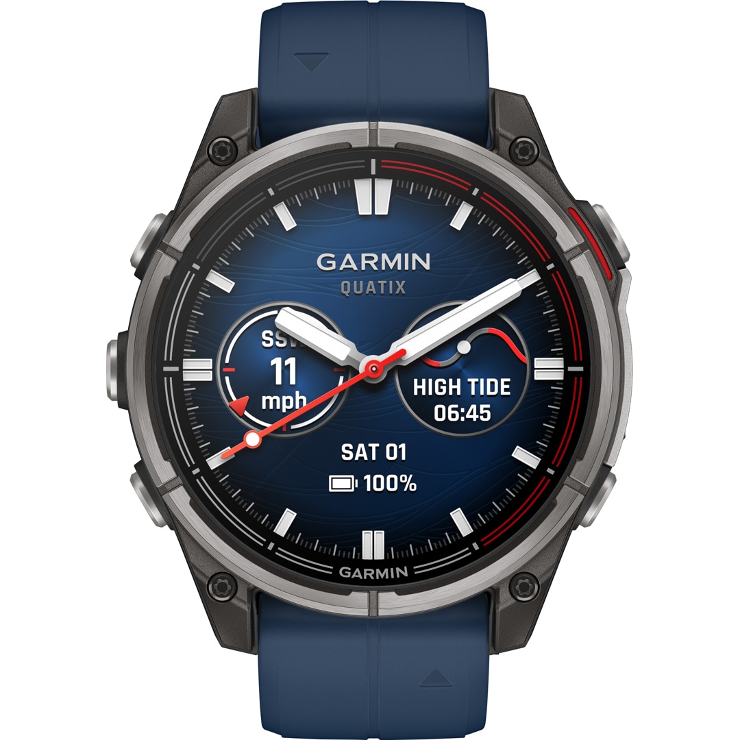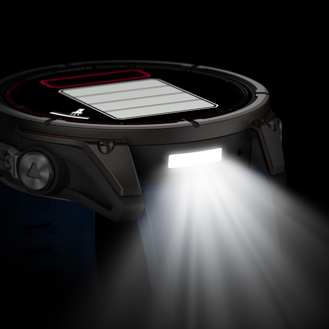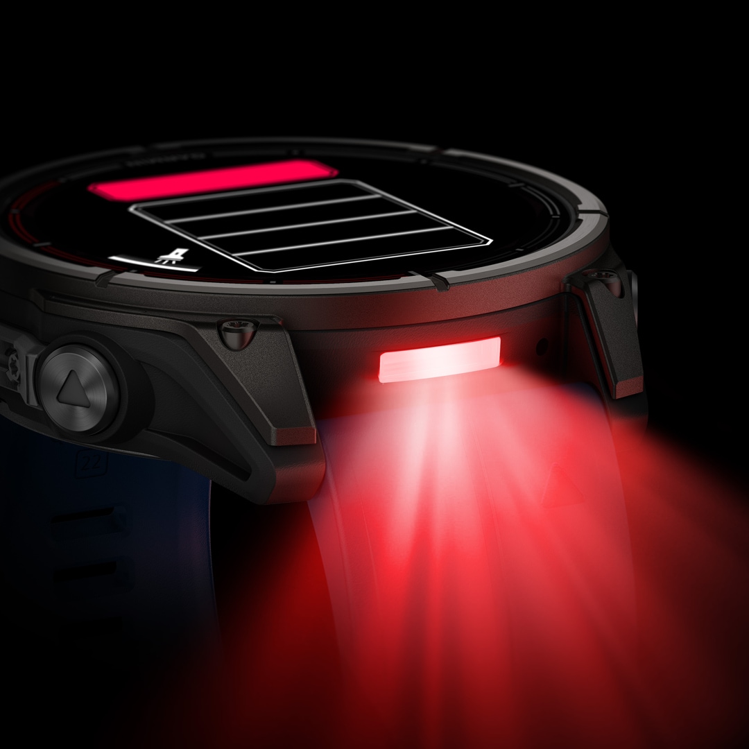 The quatix 8 nautical smartwatch includes a bright 1.4″ AMOLED display and LED flashlight, so you’ll get features you need at the helm and ones you want off it.