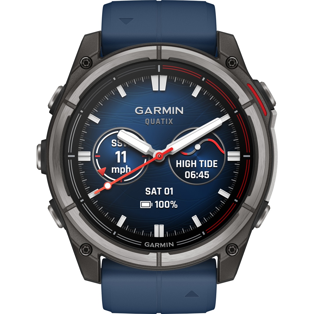 The quatix 8 nautical smartwatch includes a bright 1.4″ AMOLED display and LED flashlight, so you’ll get features you need at the helm and ones you want off it.