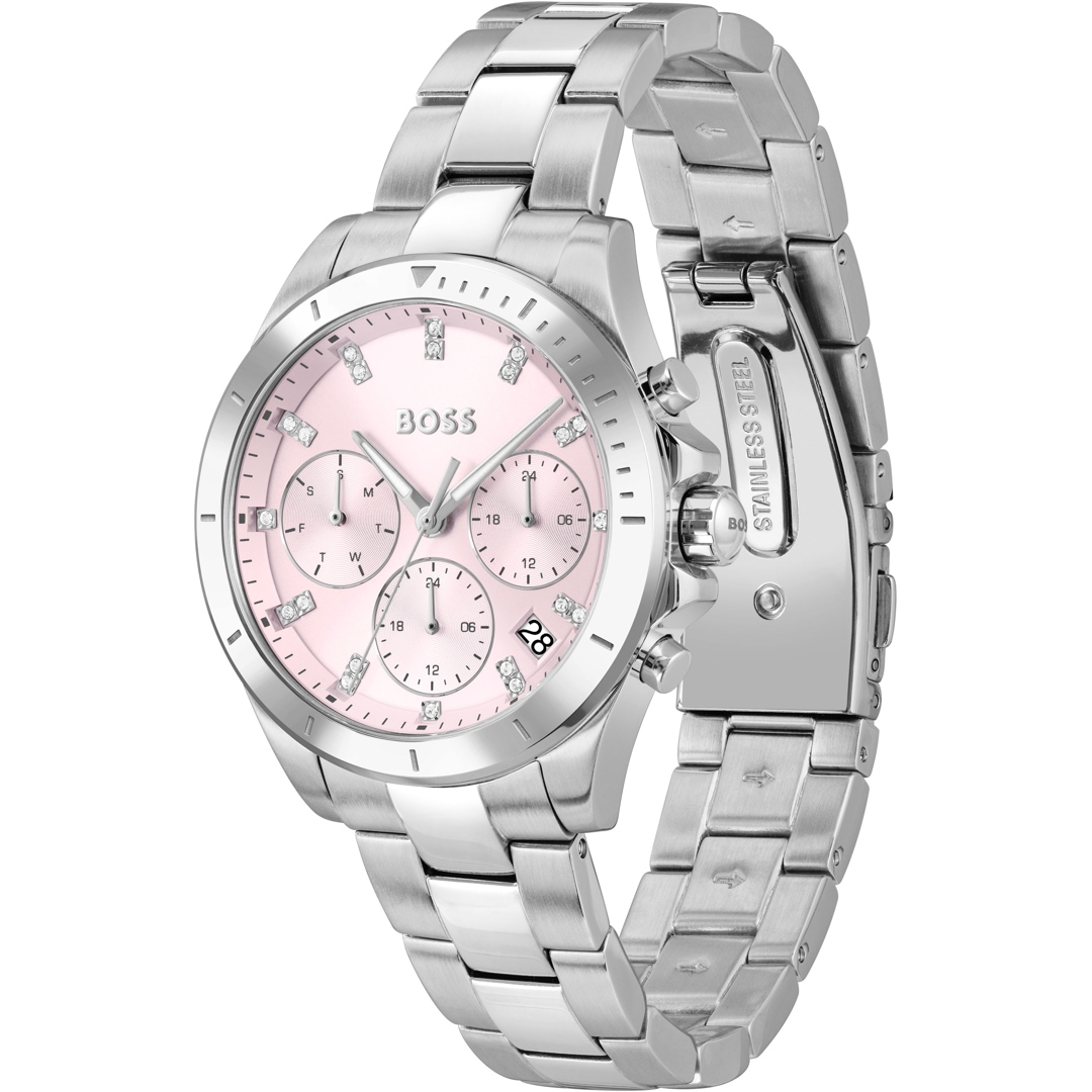 The Hugo Boss Alley ladies' watch is a truly elegant piece of jewellery that will delight any fashion-conscious woman. The watch captivates with its timeless design and high-quality stainless steel bracelet, which goes perfectly with any outfit. The dial is complemented by delicate rhinestones in the form of hour markers.