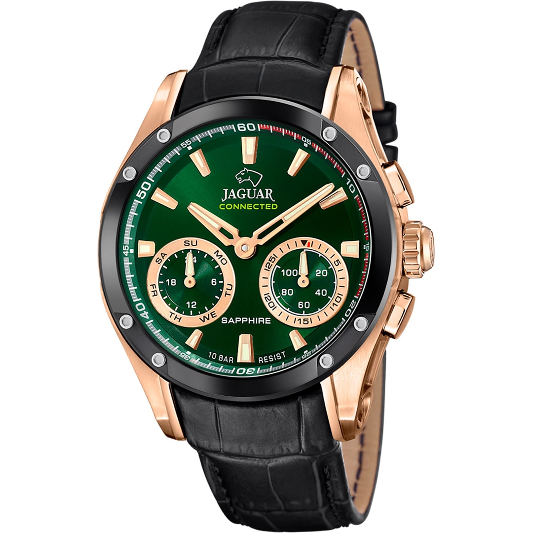 | Extra features | Intelligent functions via Jaguar Connected app, 24 hours display | Functions | Chronograph, Date, Luminescent hands / indexes, Weekday display |