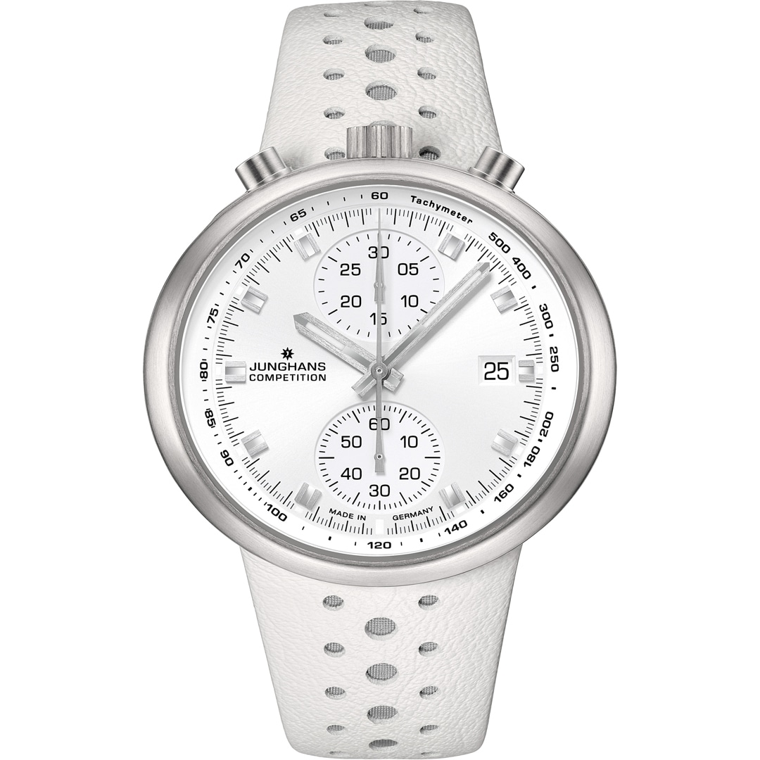 The shape of the 1972 Competition clearly refers to the design language of the seventies, when Junghans was the timekeeper at numerous sport competitions. With its oval case shape and the buttons and crown placed at the top in the style of a stopwatch, it makes a statement of extravagance on your wrist.