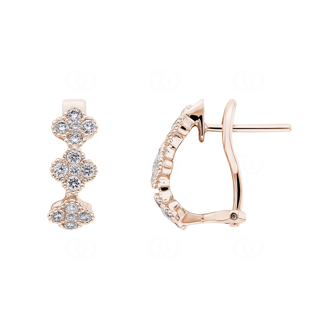 Hoop Earrings 750/18 K Rose Gold Cloverleaves with Diamonds 0.58 ct H/si