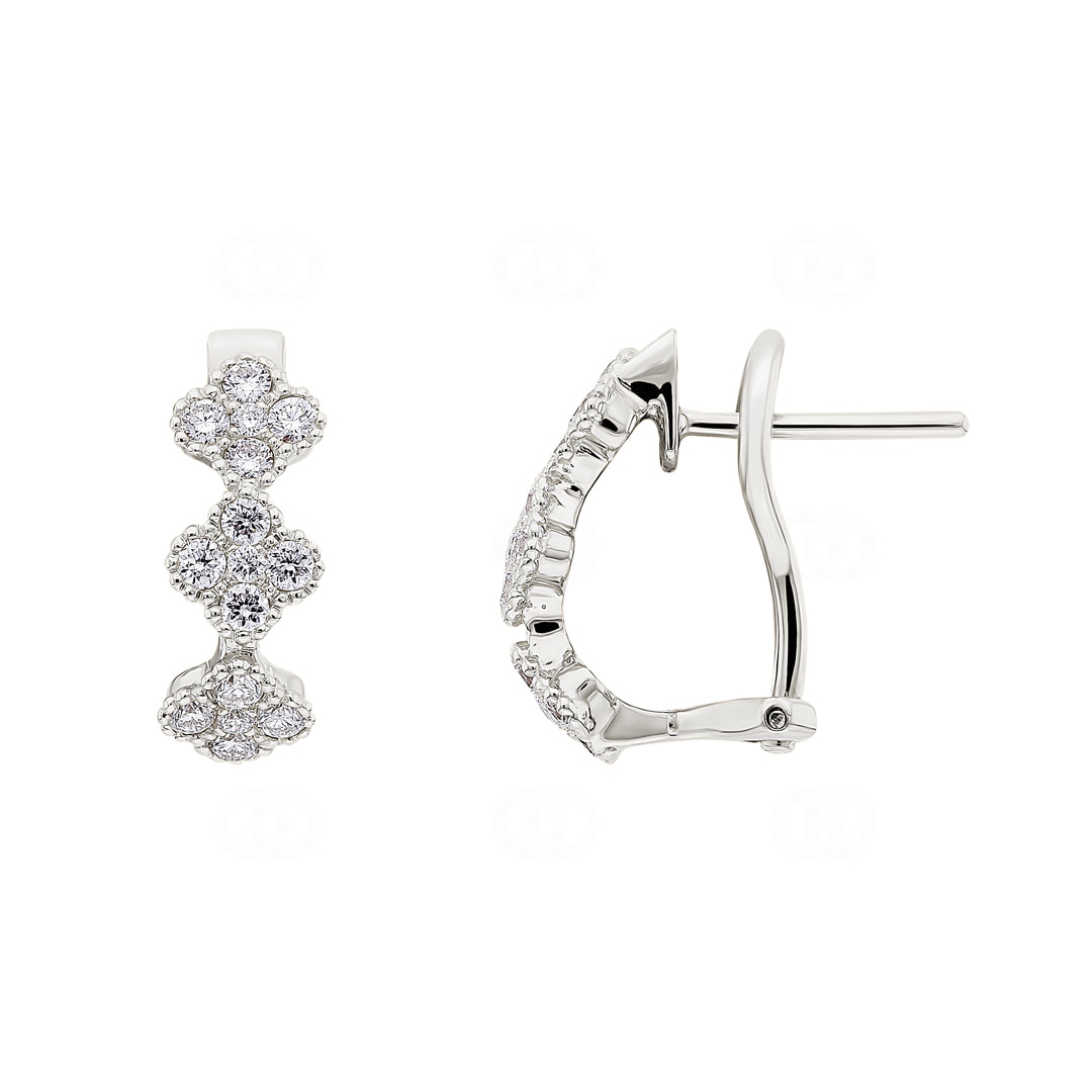 Hoop Earrings 750/18 K White Gold Cloverleaves with Diamonds 0.58 ct H/si