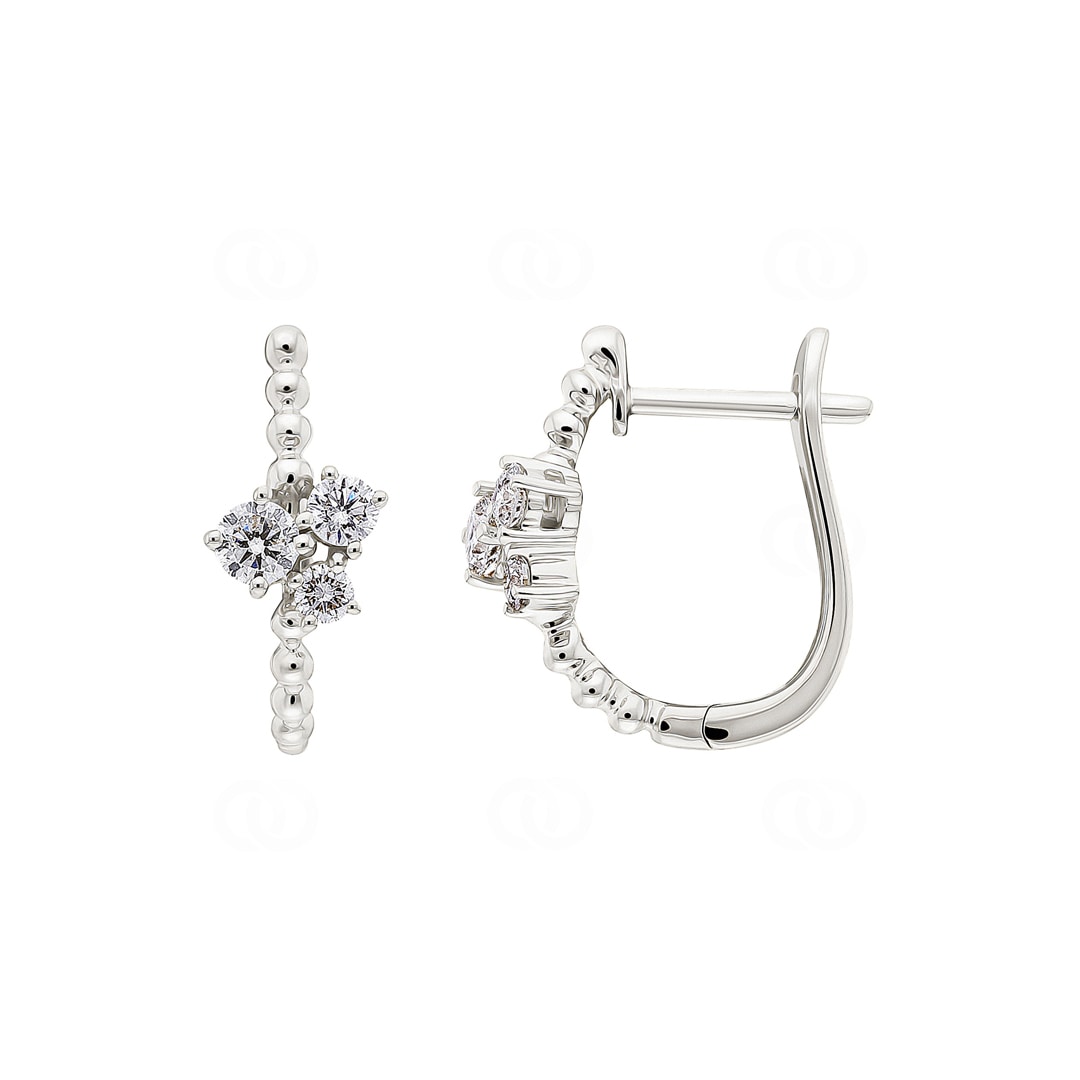 On the delicate beaded 18-carat white gold band sits a trio of brilliant diamonds (total 0.34 ct), arranged as if by chance into a small, luminous constellation. This organic layout gives the earrings a lively and modern touch.
