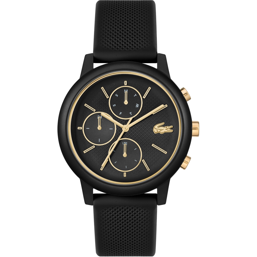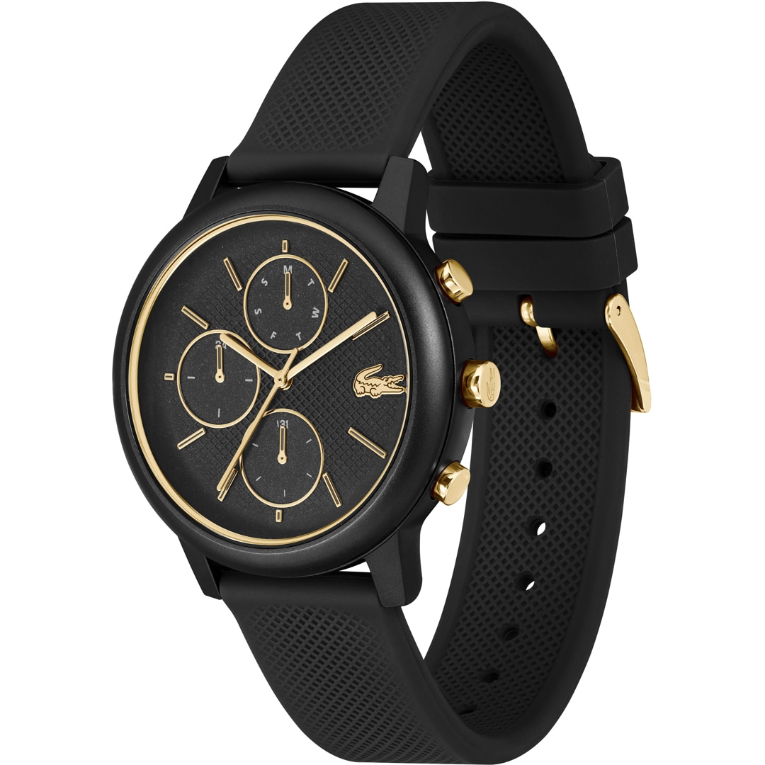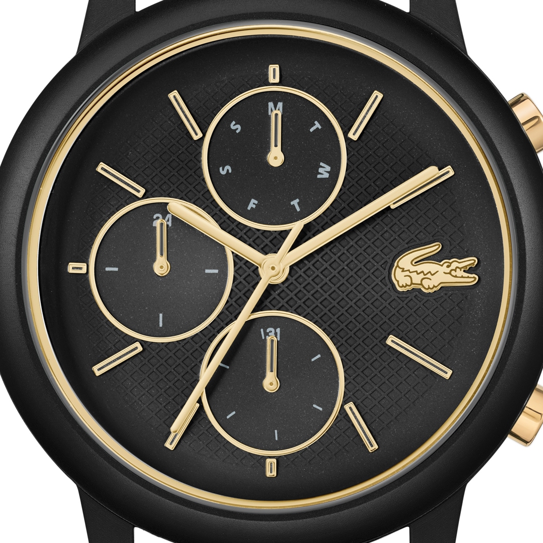 The Lacoste.12.12 Move has a simple black design and is the perfect watch for everyday wear. The hardened mineral glass perfectly protects your new accessory from accidental scratches and damage. The silicone strap fits perfectly around your wrist and is comfortable to wear.