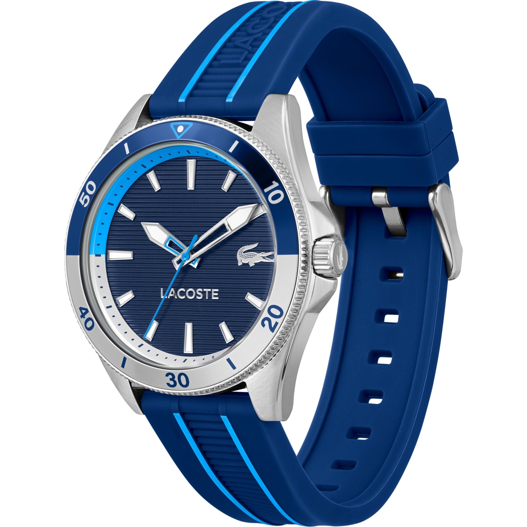 Lacoste watches from France are characterised by polished or matt stainless steel cases. The discreet stainless steel cases and the classic dials of the watches represent stylistic confidence. Enjoy the well-known lightness of Lacoste with these watches. The trademark is also unmistakable. The green crocodile decorates each dial and enables each model to be clearly categorised as a Lacoste watch. The watches for men and women are the perfect accessory for a sporty outfit.