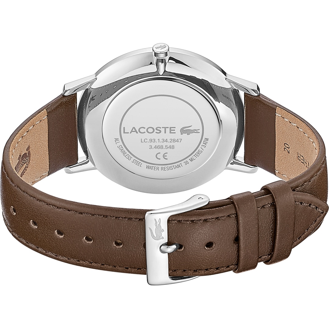 Lacoste watches from France are characterised by polished or matt stainless steel cases. The discreet stainless steel cases and the classic dials of the watches represent stylistic confidence. Enjoy the well-known lightness of Lacoste with these watches. The trademark is also unmistakable. The green crocodile decorates each dial and enables each model to be clearly categorised as a Lacoste watch. The watches for men and women are the perfect accessory for a sporty outfit.