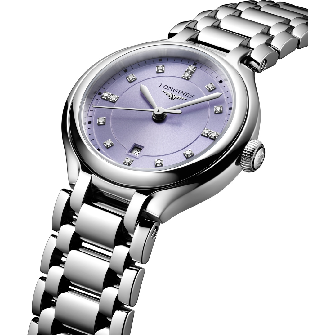A silvery moon on a spring night; a star that glistens reaches its peak and then disappears. A symbol of passing time, living time and the moon that entrances us with its rounded, delicate lines the Longines PrimaLuna is a tribute to this silvery star. Its soft silhouette is enhanced by the exquisite purity of the dial and the whole is illuminated by a play of sparkling diamonds.