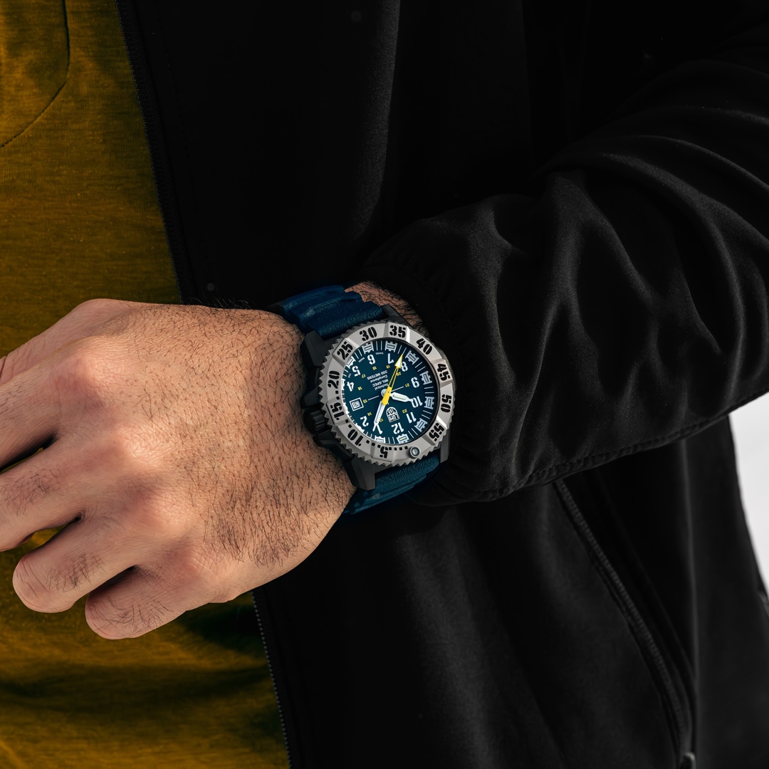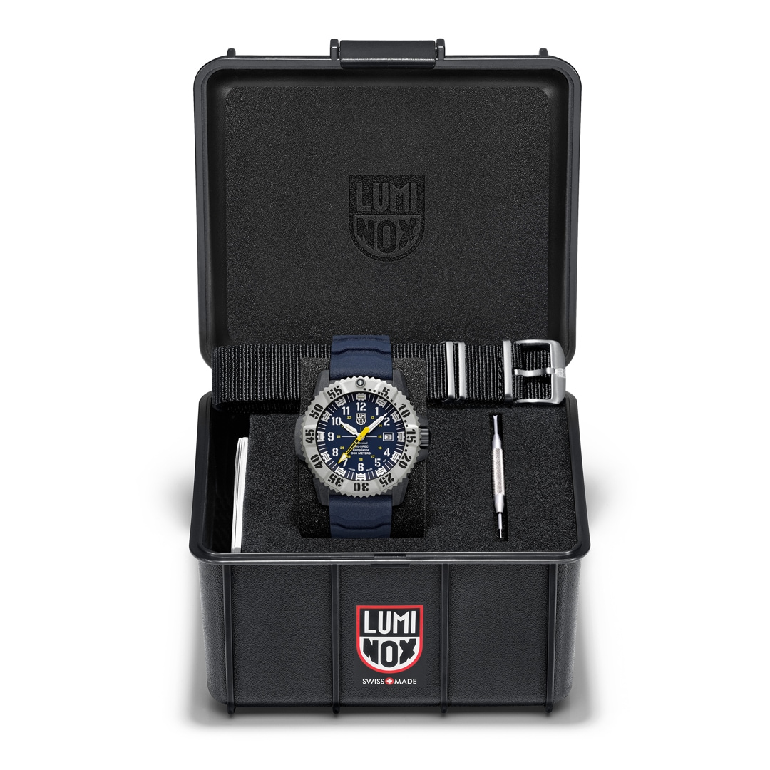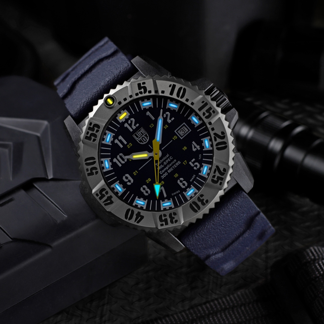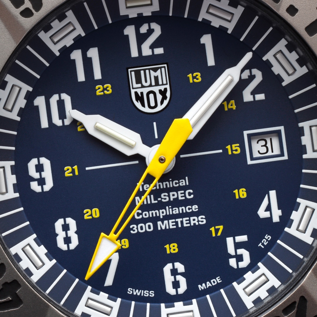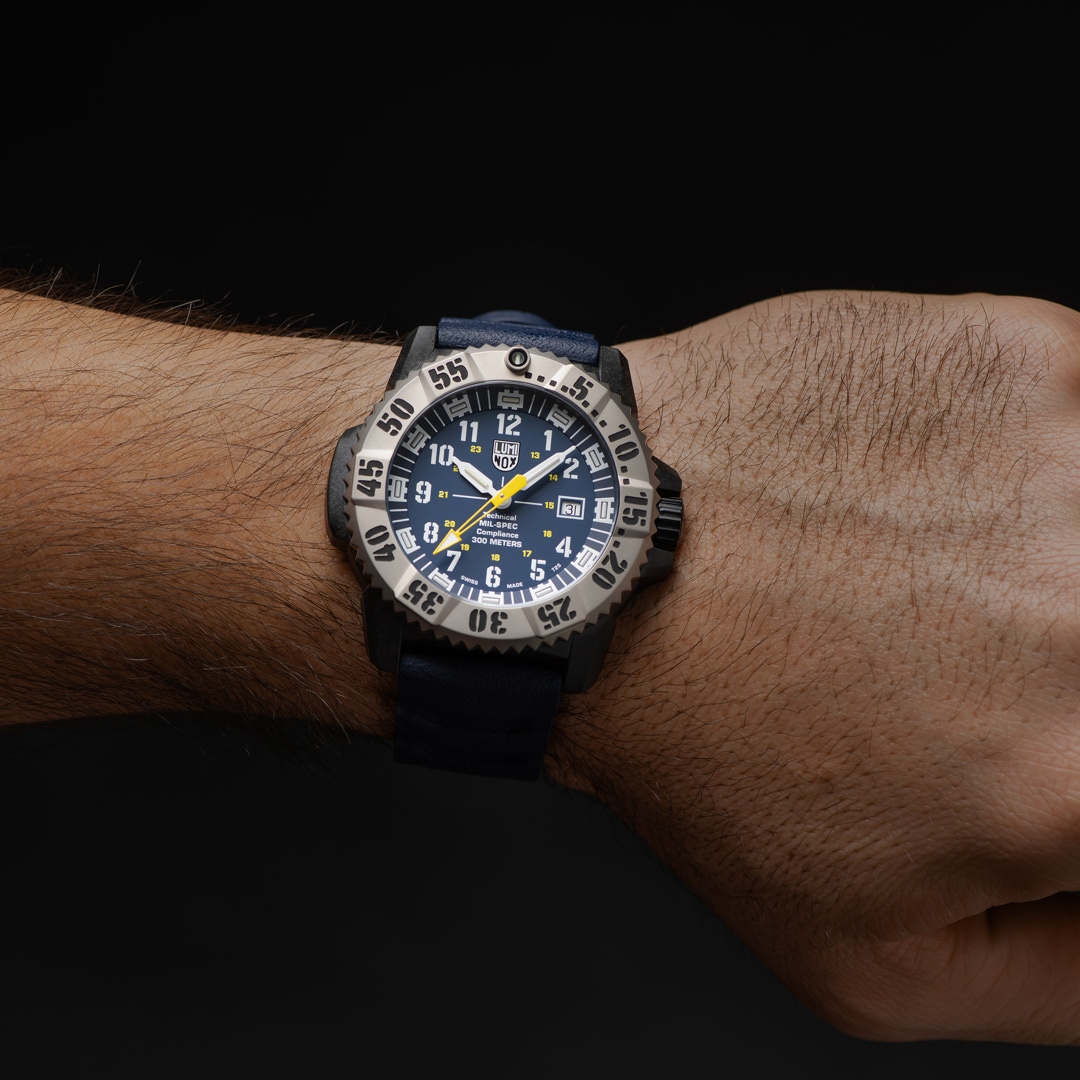 Built for extremes and certified to the strictest US military standards: the new Luminox MIL-SPEC 3350 Series makes zero compromises. Paying tribute to the US Department of Defense with a striking blue and yellow design, it merges Swiss precision with maximum durability. The exceptionally lightweight 46mm CARBONOX™+ case and corrosion-resistant titanium bezel are engineered to withstand any mission. Inside, a military-grade ETA quartz movement ensures absolute shock resistance and reliable accuracy through HeavyDrive and PreciDrive technology. Even in pitch-black conditions, the self-powered Luminox Light Technology keeps you fully in control. The ultimate companion for those who push their own boundaries.