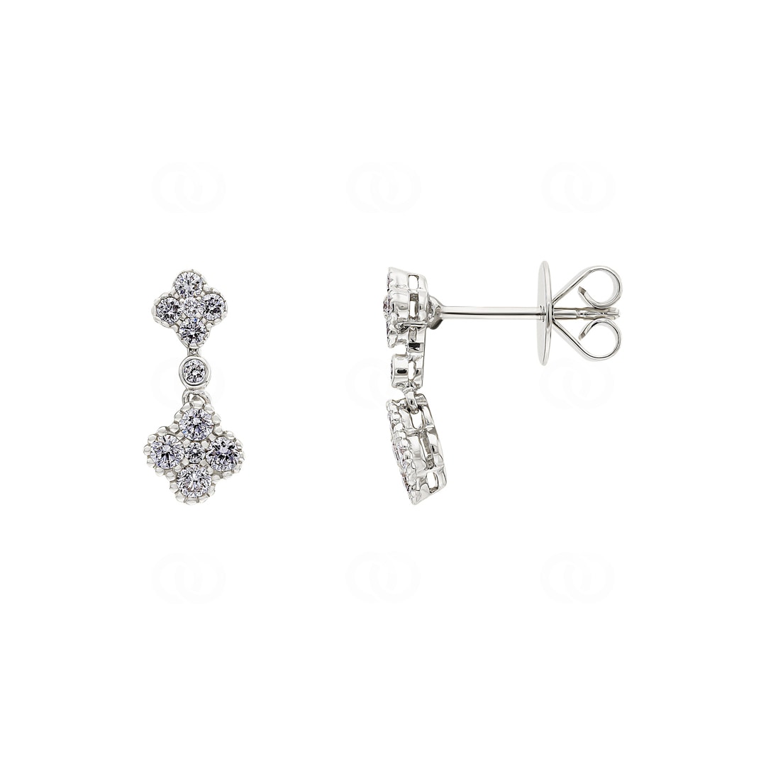 Drop Earrings 750/18 K White Gold Cloverleaves with Diamonds 0.61 ct H/si
