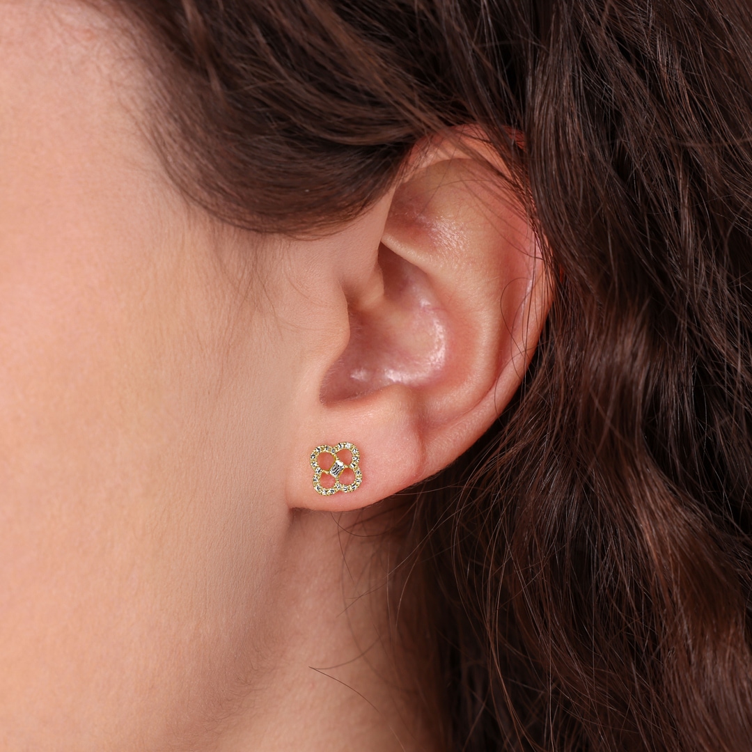 Stud Earrings 750/18 K Yellow Gold Cloverleaf with Diamonds 0.20 ct H/si