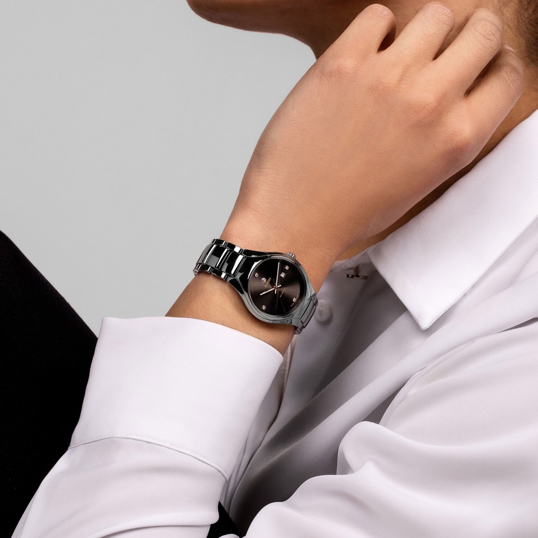 Innovative design and scratch-resistant high-tech materials are the unmistakable hallmarks of the Rado brand. As a leading company in the upper price segment, Rado has achieved worldwide fame for its research work in the field of materials science. The use of sapphire, ceramic and even high-tech diamonds gives the Rado watch its strong and unique character.