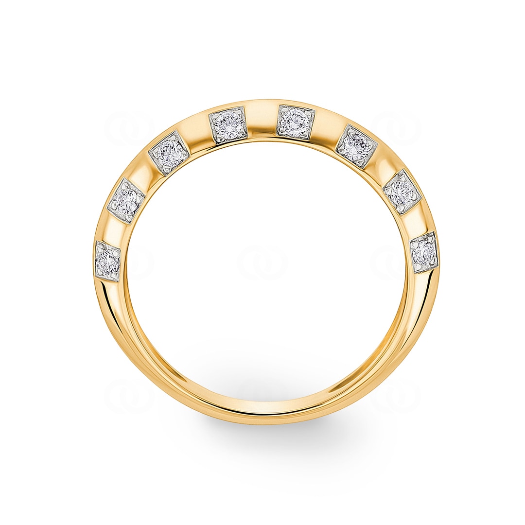 This 18-karat gold ring is the perfect essential for any jewelry collection. Its clean, contemporary design makes it an ideal companion – elegant enough to be worn alone, and perfectly proportioned to pair with other rings for a personalized look. The standout feature is the modern arrangement of 16 sparkling diamonds. Each stone is set in its own square mount, creating a captivating mosaic of light and gold. This geometric precision gives the ring a touch of graphic elegance that subtly sparkles with every movement.