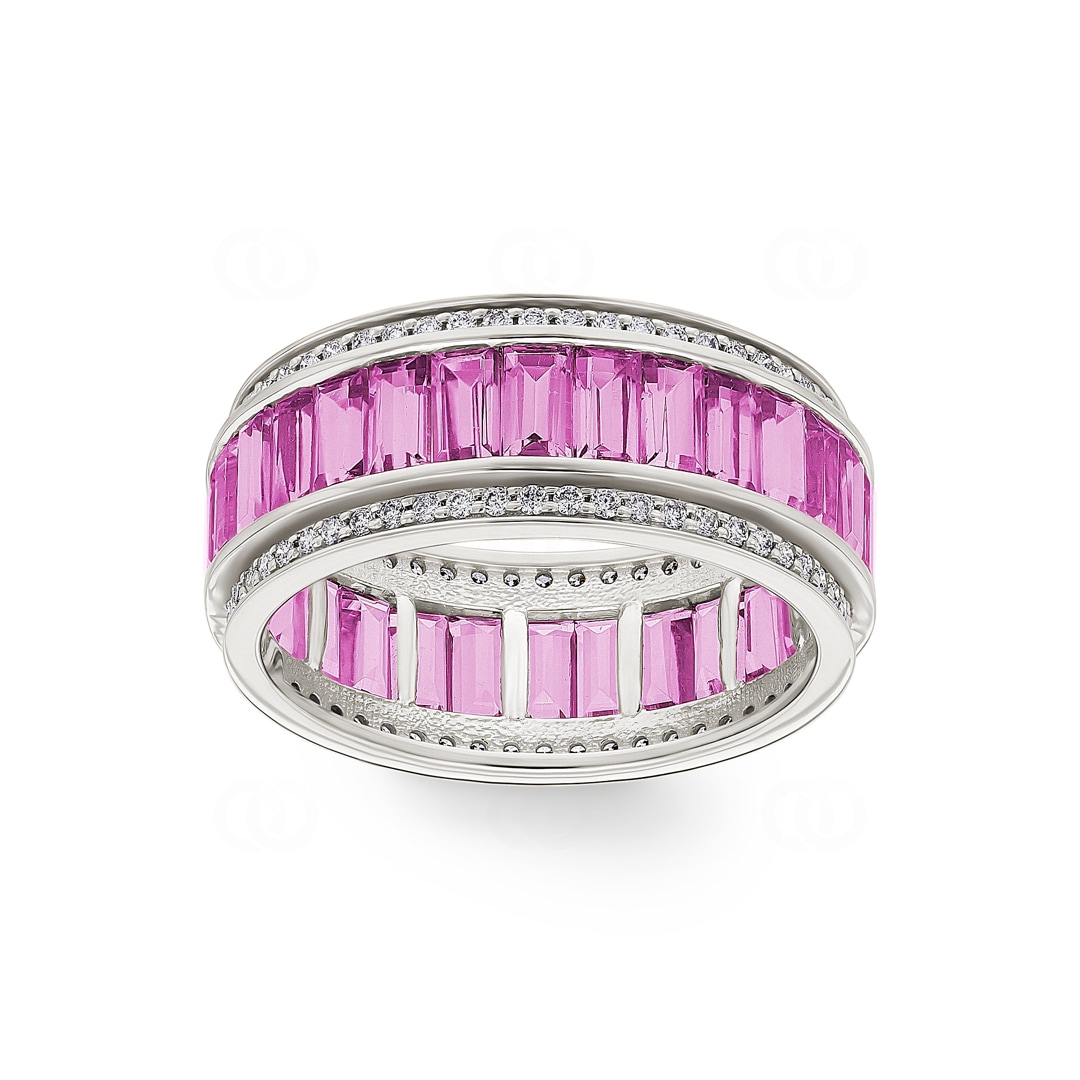 With the setting encircling the entire band, this captivating play of colour is perfect from every angle. A piece that combines clean design with a touch of luxurious romance.