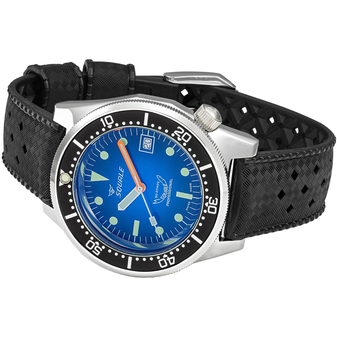 A deep passion for the sea and the development of professional diving instruments have shaped the Squale brand since its foundation in 1959. Much like the shark in its logo, these timepieces symbolise the strength and reliability for which the brand has been globally renowned for over 60 years. Squale's identity is inextricably linked to the "Swiss Made" seal, representing the highest standards of craftsmanship and precision. As the official supplier to elite units such as the Italian Marina Militare and the Polizia Italiana, these watches are far more than mere accessories—they are functional tools designed for extreme conditions. Through a perfect blend of historical heritage and technical innovation, Squale remains true to its mission of safely conquering the depths of the ocean.