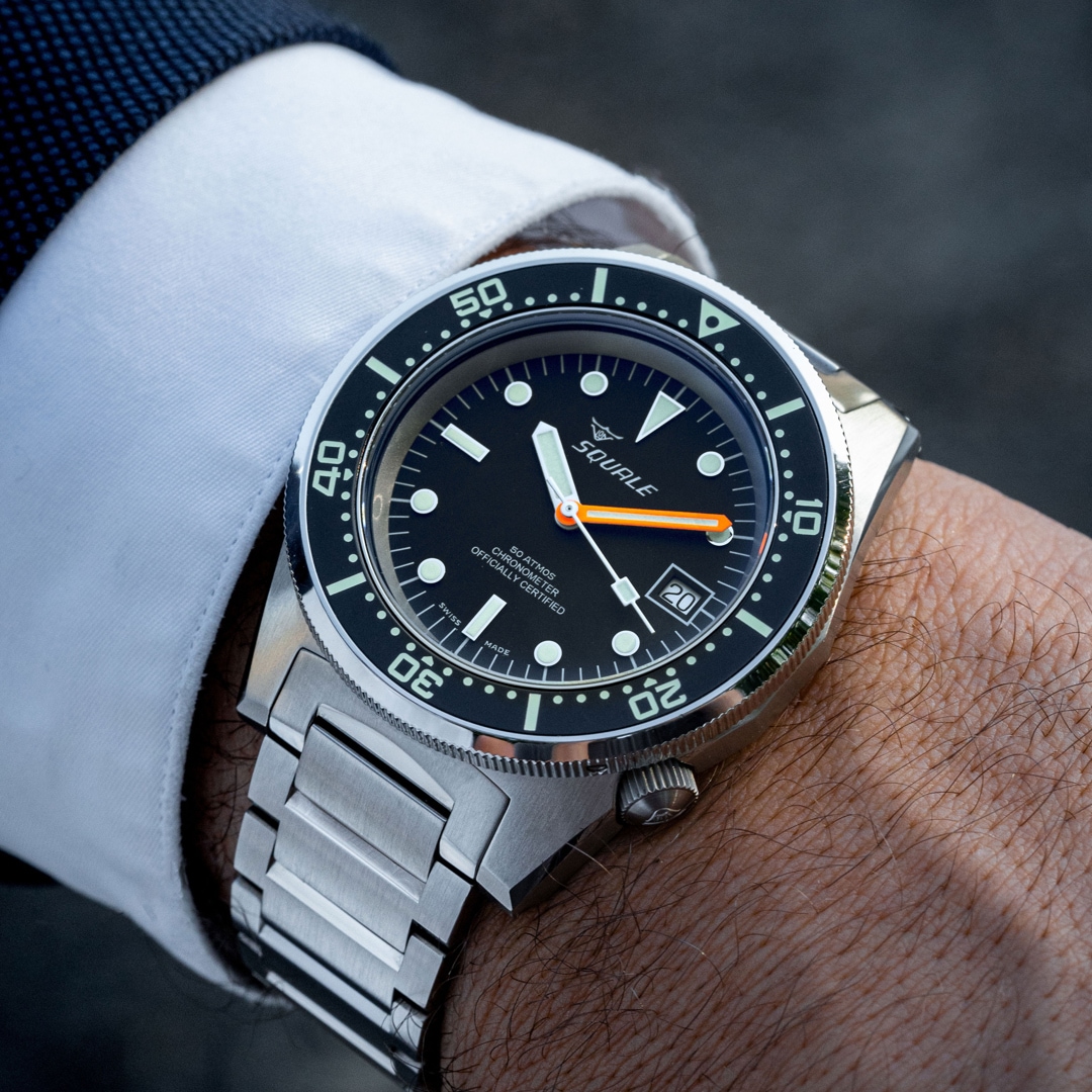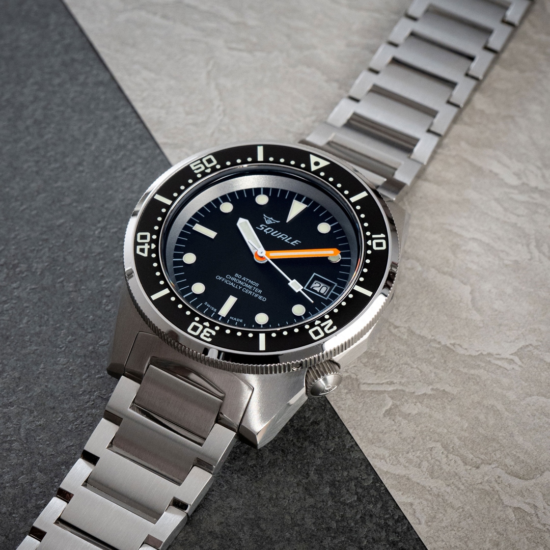 A deep passion for the sea and the development of professional diving instruments have shaped the Squale brand since its foundation in 1959. Much like the shark in its logo, these timepieces symbolise the strength and reliability for which the brand has been globally renowned for over 60 years. Squale's identity is inextricably linked to the "Swiss Made" seal, representing the highest standards of craftsmanship and precision. As the official supplier to elite units such as the Italian Marina Militare and the Polizia Italiana, these watches are far more than mere accessories—they are functional tools designed for extreme conditions. Through a perfect blend of historical heritage and technical innovation, Squale remains true to its mission of safely conquering the depths of the ocean.