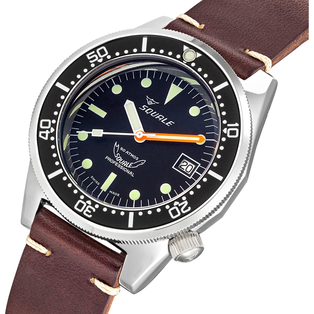 A deep passion for the sea and the development of professional diving instruments have shaped the Squale brand since its foundation in 1959. Much like the shark in its logo, these timepieces symbolise the strength and reliability for which the brand has been globally renowned for over 60 years. Squale's identity is inextricably linked to the "Swiss Made" seal, representing the highest standards of craftsmanship and precision. As the official supplier to elite units such as the Italian Marina Militare and the Polizia Italiana, these watches are far more than mere accessories—they are functional tools designed for extreme conditions. Through a perfect blend of historical heritage and technical innovation, Squale remains true to its mission of safely conquering the depths of the ocean.
