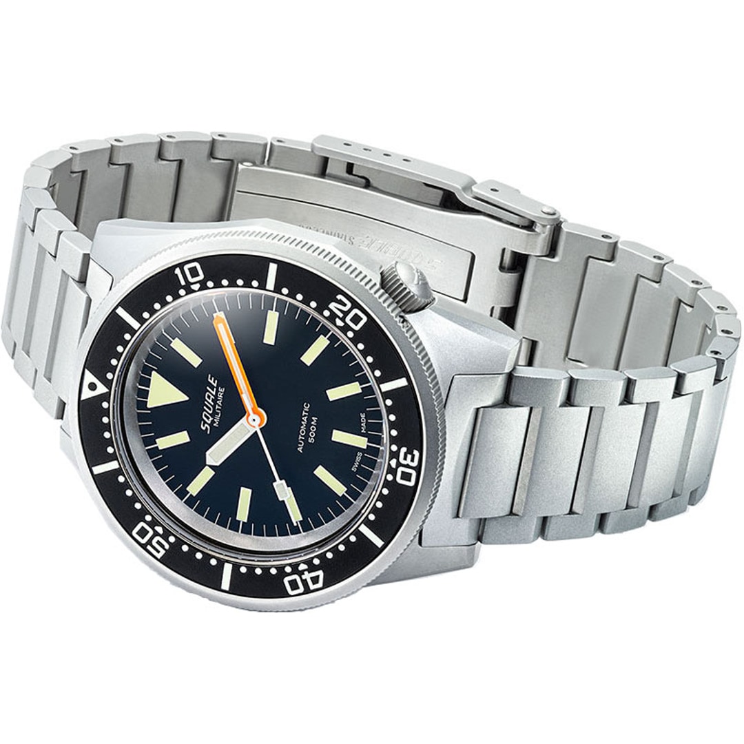 A deep passion for the sea and the development of professional diving instruments have shaped the Squale brand since its foundation in 1959. Much like the shark in its logo, these timepieces symbolise the strength and reliability for which the brand has been globally renowned for over 60 years. Squale's identity is inextricably linked to the "Swiss Made" seal, representing the highest standards of craftsmanship and precision. As the official supplier to elite units such as the Italian Marina Militare and the Polizia Italiana, these watches are far more than mere accessories—they are functional tools designed for extreme conditions. Through a perfect blend of historical heritage and technical innovation, Squale remains true to its mission of safely conquering the depths of the ocean.