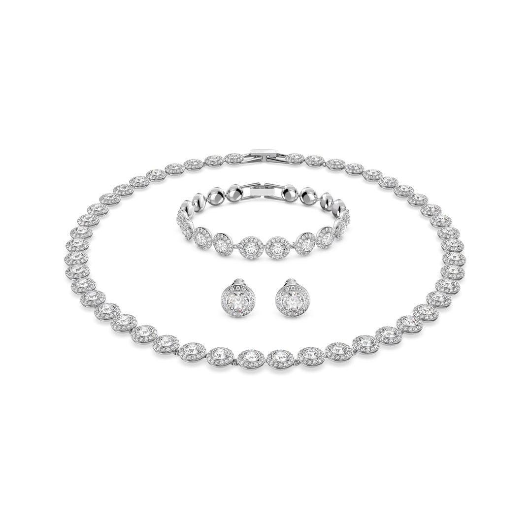 Treat yourself or someone special to a new jewellery box staple with this beautiful necklace and bracelet set, which is now available in the classic, always easy-to-wear combination of crystal and rhodium plating. The timeless design would make an ideal gift, or a stunning bridal accessory.