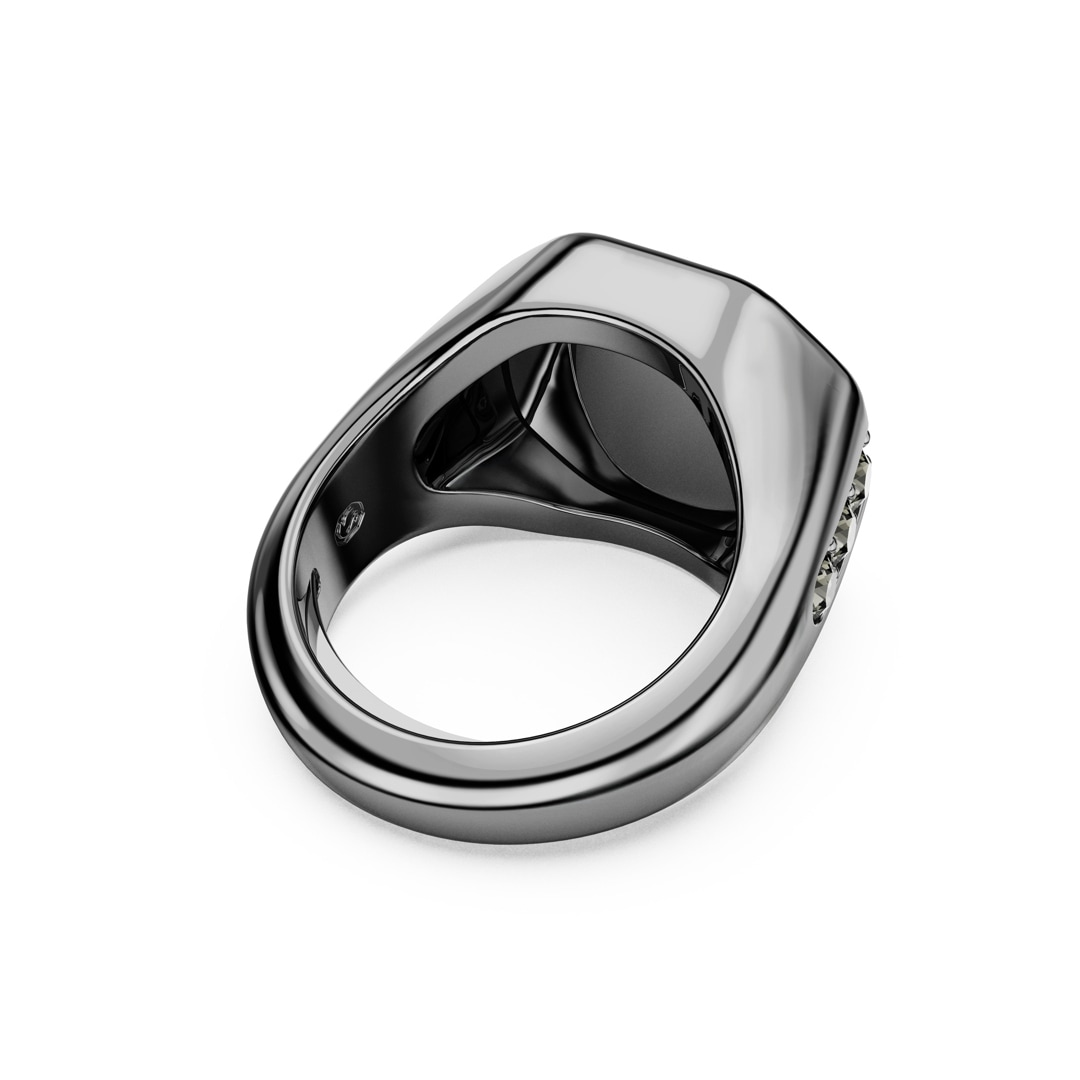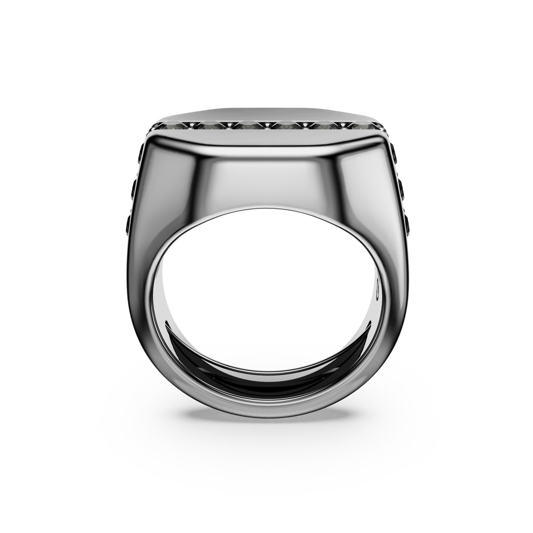 A stunning contrast between light and dark, this Dextera signet ring is a perfect choice for alternative styling. The band itself is ruthenium plated for a metallic finish and features a strip of silvery black crystals inspired by the night sky. For extra innovation, the ring includes an adjustable mechanism to fit all sizes.
