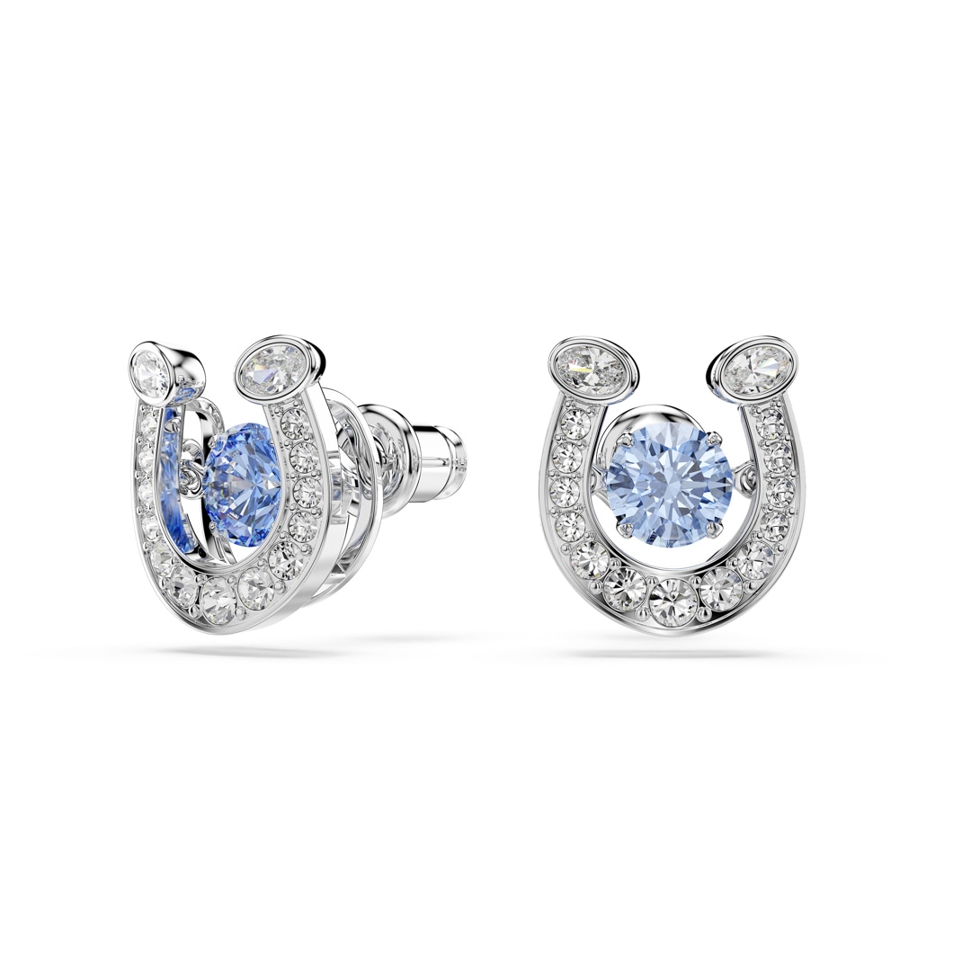 Embrace the free spirit of the horse with these stunning Swarovski earrings. Each rhodium plated horseshoe features a blue dancing stone at the center that creates a constant play of light. A colorful gift for those chasing success.