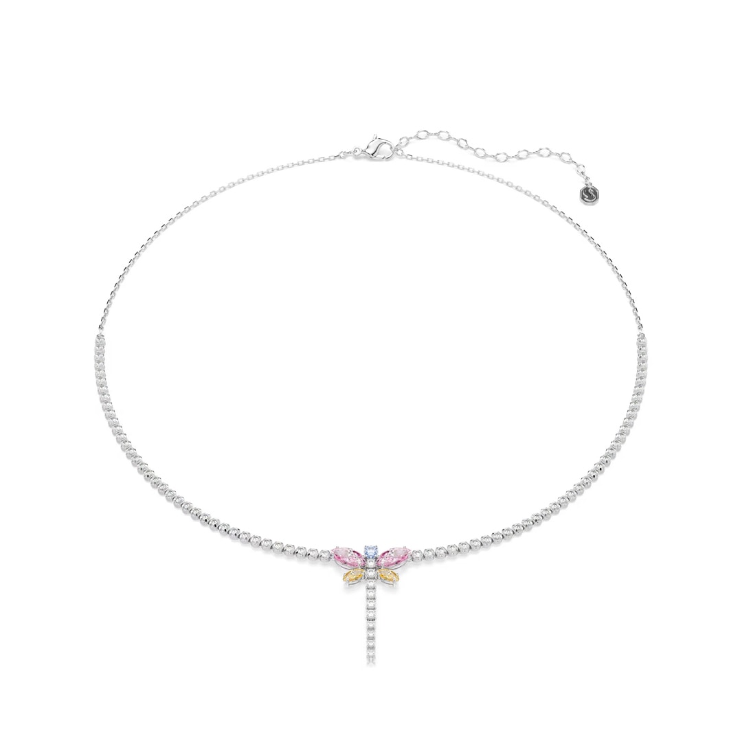 This graceful dragonfly jewelry embodies transformation as well as elegance. Adorned with Swarovski Zirconia and softly tinted wings in shades of pink and yellow, it can be worn as a cupchain necklace or shortened into a choker via the sliding mechanism. A versatile choice that pairs beautifully with other dragonfly-inspired designs from the same collection.