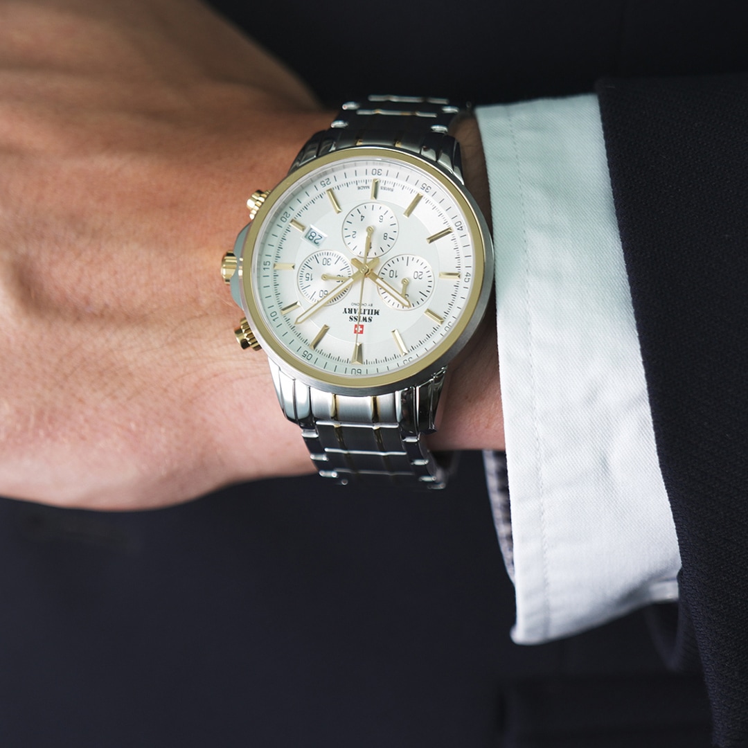 Swiss Military by Chrono represents Swiss precision, exceptional quality, and sporty design. Since its creation in 1994, the brand has been manufactured by Chrono AG in Solothurn, a family-owned company with over 35 years of experience in the watchmaking industry. With its bold designs and versatility, these timepieces cater to those who lead active lifestyles, both professionally and during leisure time.