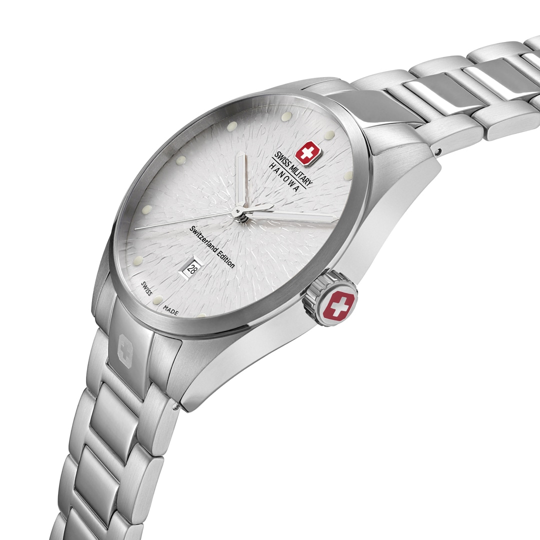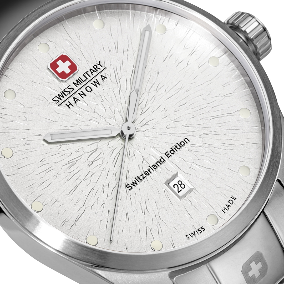 Bring a piece of majestic Alpine landscape directly to your wrist. The Swiss Military Hanowa Mountain Peak Switzerland Edition fascinates with a uniquely textured dial reminiscent of eternal ice and craggy rock faces. Crafted from stainless steel, this timepiece embodies cool elegance and uncompromising robustness. The Swiss Made seal guarantees supreme reliability at every second. Whether as a souvenir or a tribute to the homeland, this special edition is a stylish statement for all who appreciate true greatness and natural beauty.