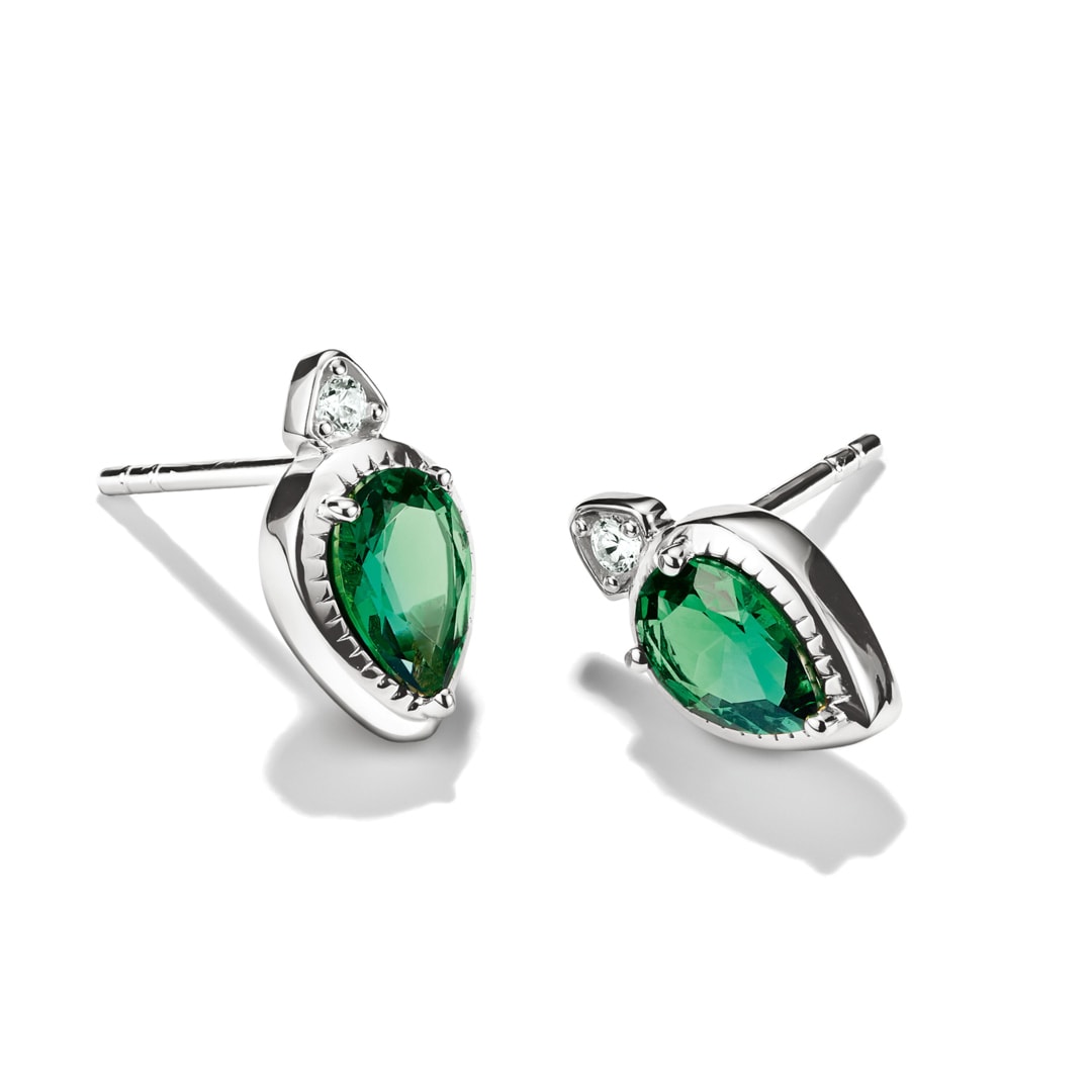 These Elyndra stud earrings in recycled 925 Sterling silver blend understated design with expressive colour. The emerald-green pear-cut stones glow intensely and add depth to your look.