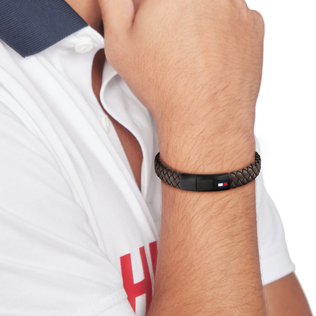 Combine this timeless leather bracelet from Tommy Hilfiger with other great accessories and special details.