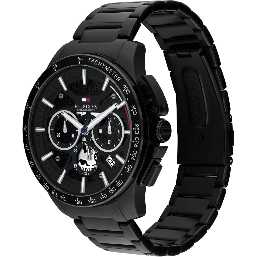 A striking Tommy Hilfiger watch in stainless steel with a modern finish, offering a look that is both sporty and elegant. This men’s accessory features striking push-buttons. Three sub-dials on the dial complete the design. This sophisticated Tommy Hilfiger watch is water-resistant to a depth of 50 metres (5ATM). Add the finishing touch to your look with this contemporary accessory.