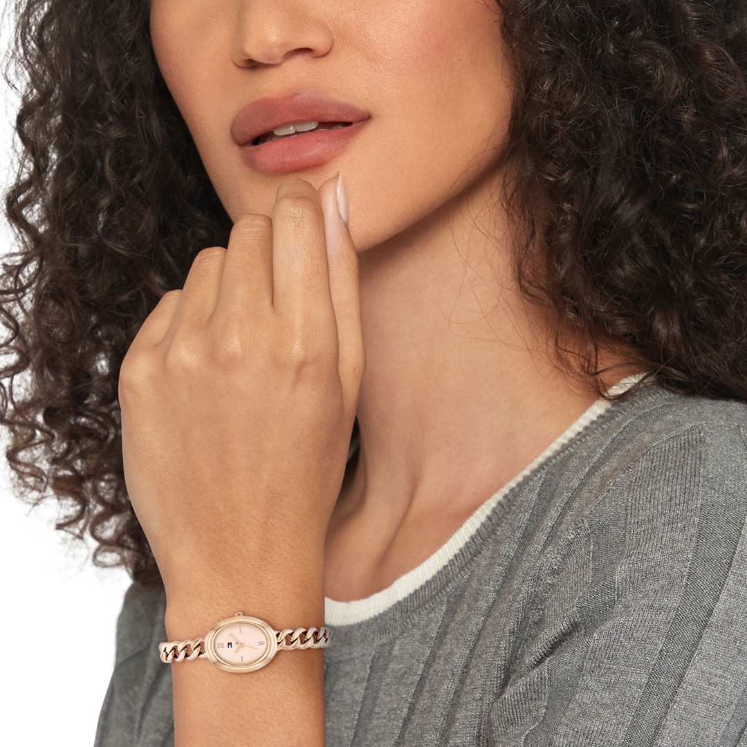 A classic wristwatch by Tommy Hilfiger featuring a stainless steel case and quartz movement. The dial and the stunning strap complement each other perfectly. The stainless steel case frames the minimalist dial. This model showcases its bespoke character with an uncompromising attention to detail. The perfect blend of a classic timepiece and a modern everyday watch!