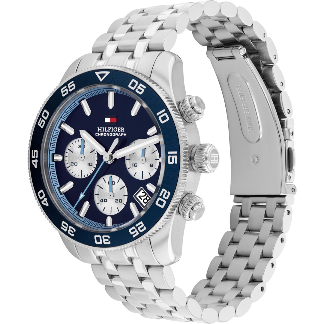 Precisely crafted Tommy Hilifger sports watch with rotating diver's bezel. The clean men's accessory in diver style is made from robust stainless steel for a masculine look. A beautiful, high-quality strap rounds off the style. Thanks to the luminescent hour and minute hands, the time is easy to read even in poor lighting conditions.