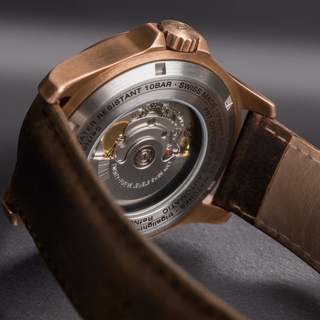 - I already wear a Traser because I am impressed by the look and the light function every day. This one is also an eye-catcher. The bronze case is amazing. In combination with the glass bottom, it transports me a little into the adventure world of Jules Verne. (Posted on 15.06.2023)