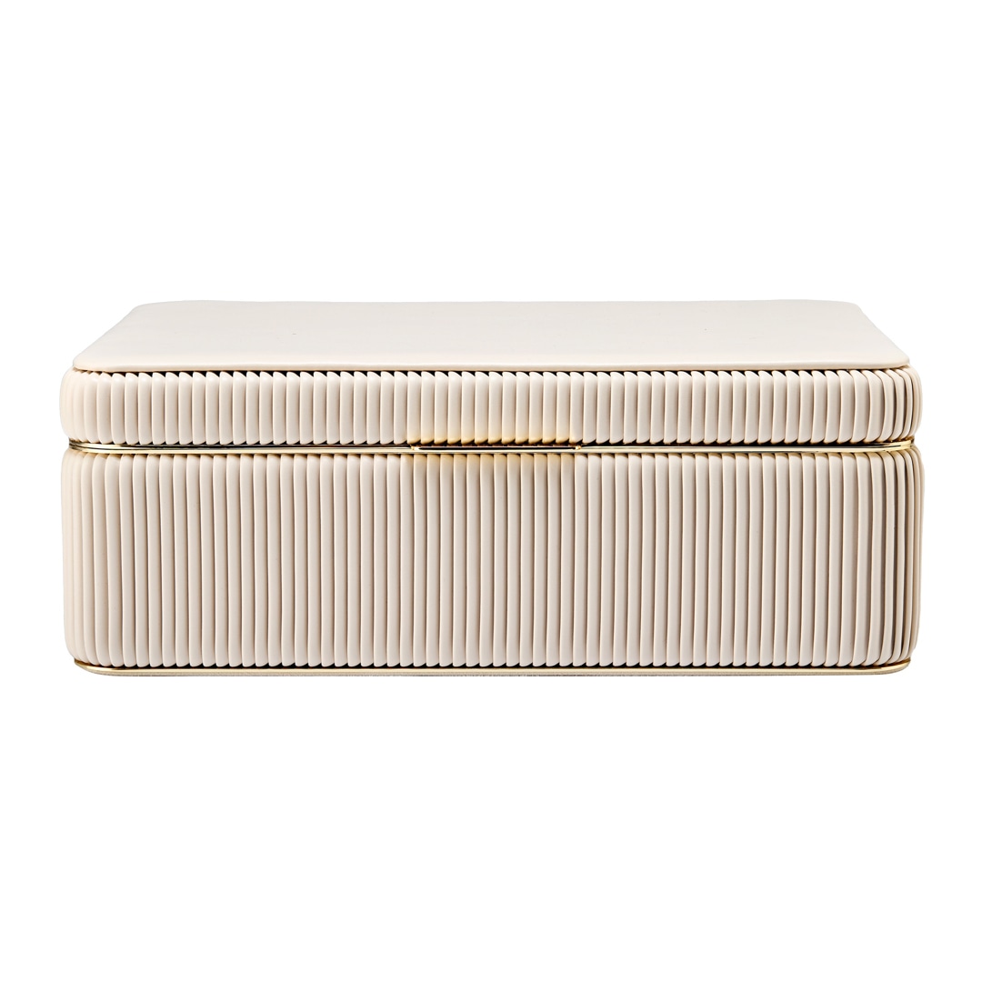 The Bella Large Jewellery Box combines opulence and sophistication. Its smooth vegan leather lid, perfectly pleated sides, and gold-finished interior frame and hardware give the box an elegant look.
