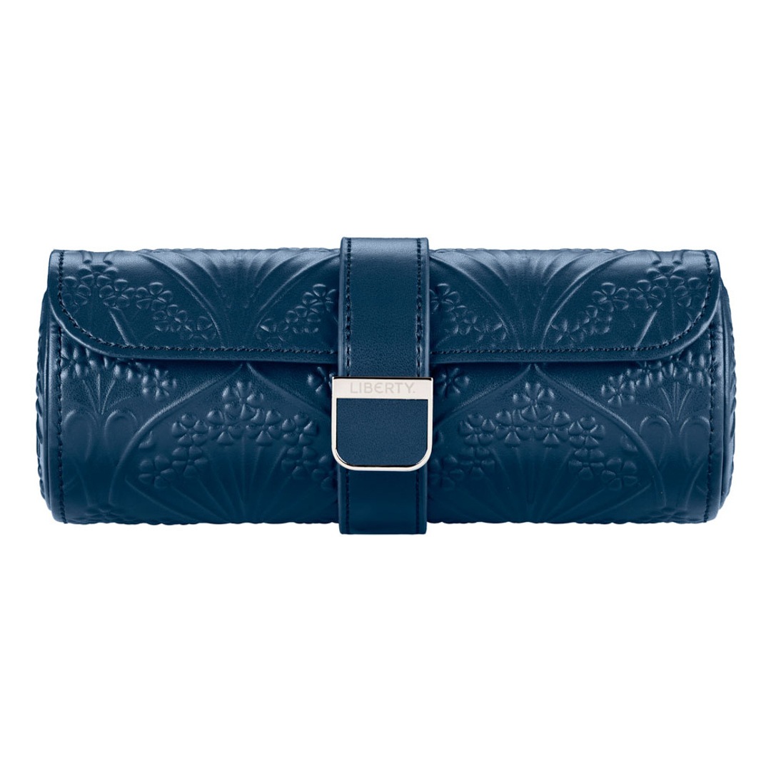 The WOLF X LIBERTY triple watch roll combines WOLF's classic watch case with Liberty's iconic Ianthe design. The outer material is made from sustainable organic material and the embossed pattern gives the case an elegant look.